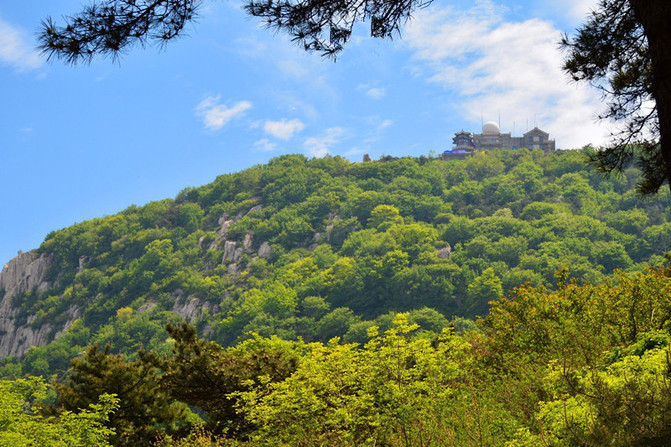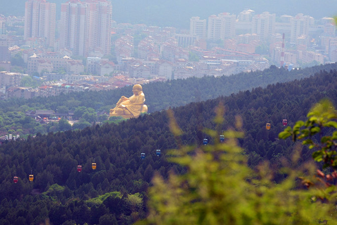 望岳亭处看到的千佛山索道及大佛头