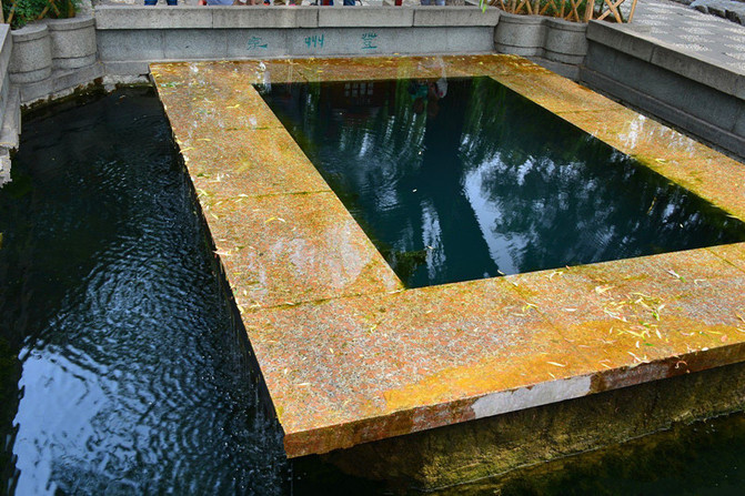 龙潭观鱼。潭水清冽,鱼儿自在,此处观鱼确为一景。