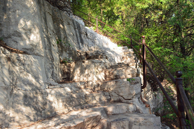 走在此处,右膝盖有点隐隐作痛,看着漫漫下山台阶有点愁啊,坐下歇歇吧,一会儿下来一位小哥,看他下山的样子也是膝盖受不了的样子,一盘谈还真是,还是来自北京奥组委的,我开玩笑你都奥组委的还这样啊,他说上学时膝盖受过伤,原来如此,于是两人一路走走停停相伴下山,每次出游总能遇到能谈得来能相互鼓舞帮助的人,幸甚!现在坐下来回味当时下山的痛楚,真有点“下炼狱”的感觉