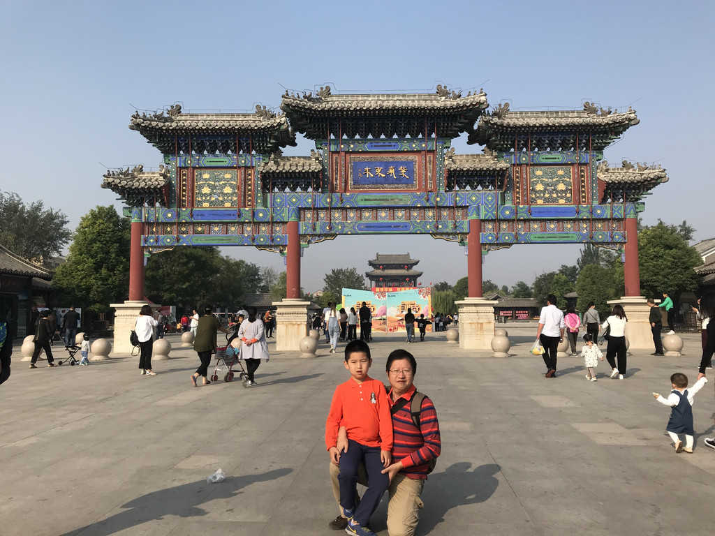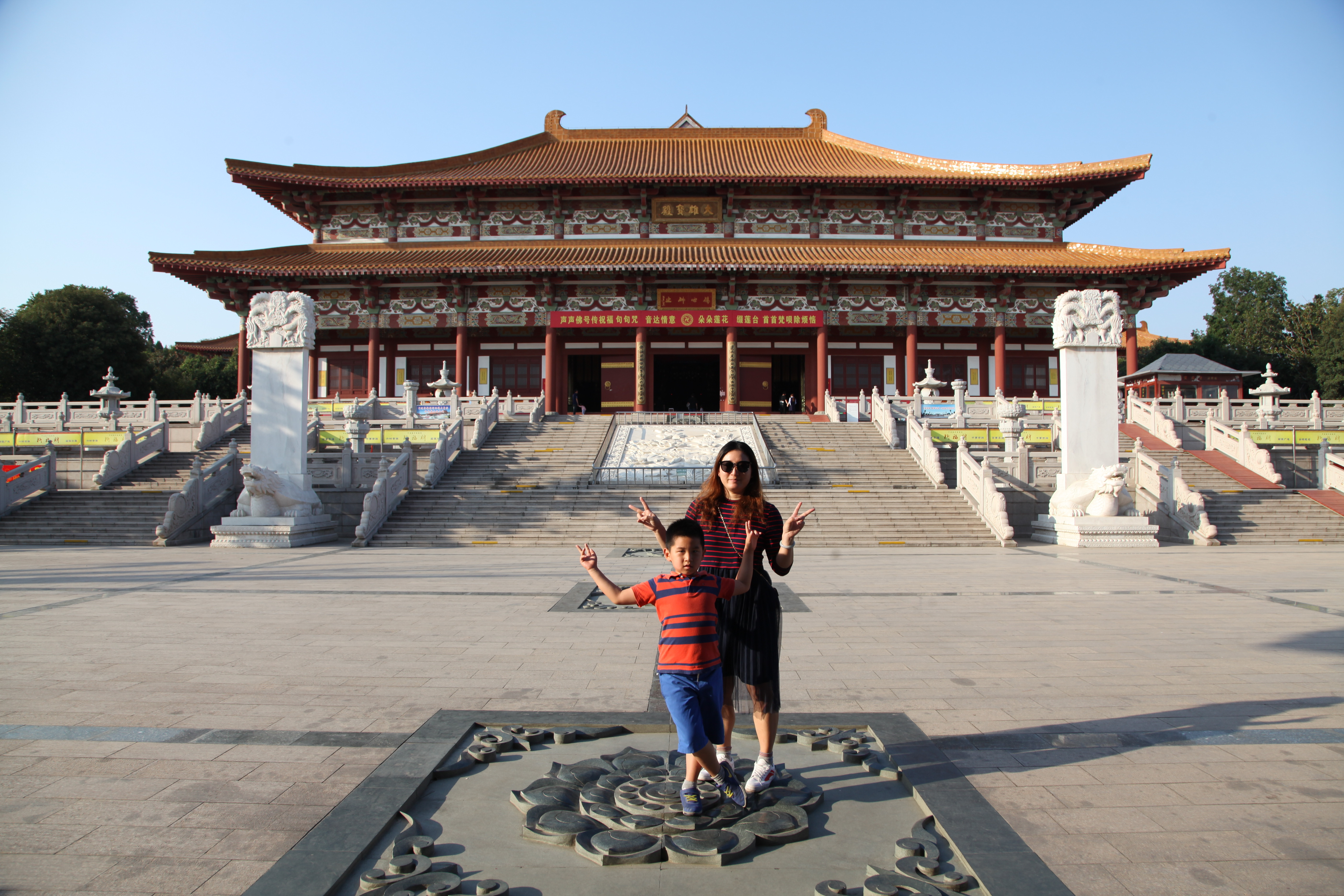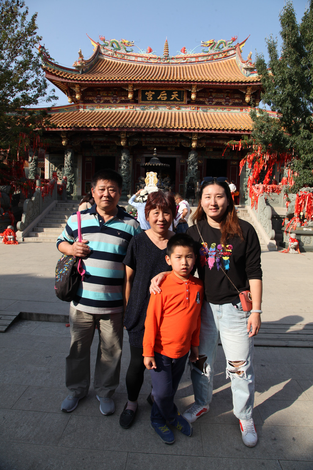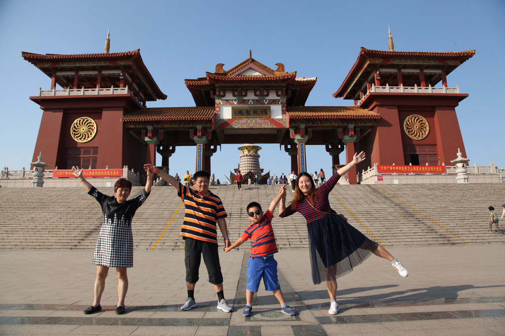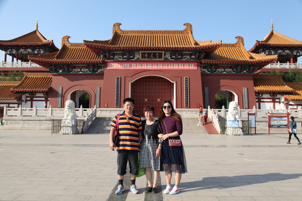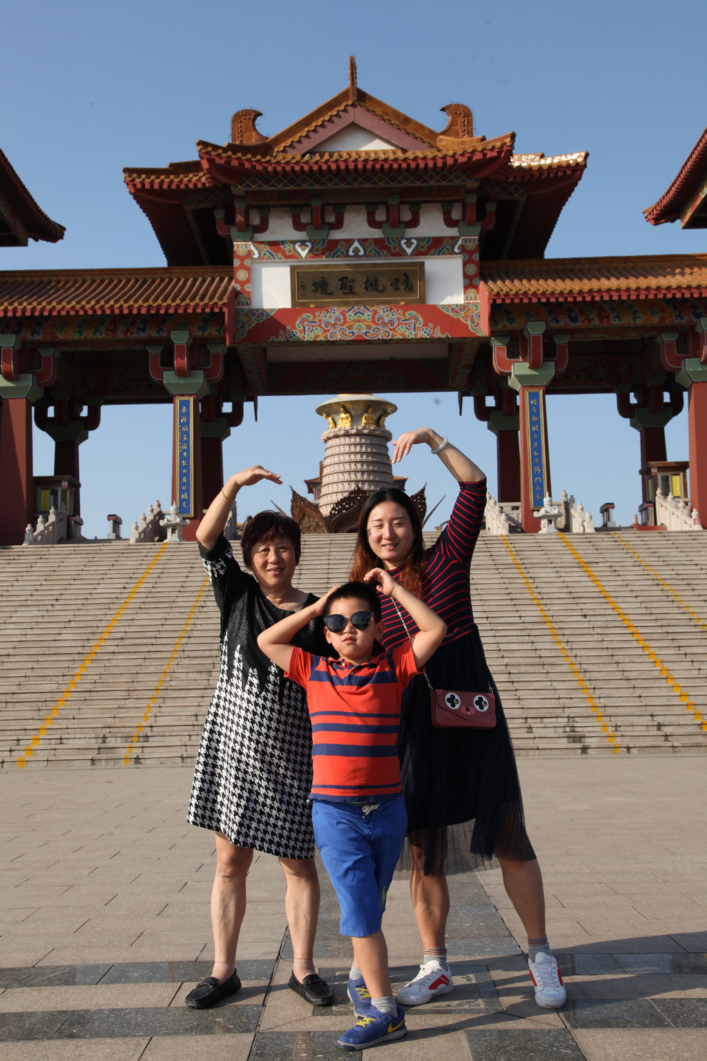 手拉手,快乐的一家人,徐州宝莲寺蟠桃圣境山门前的广场上
