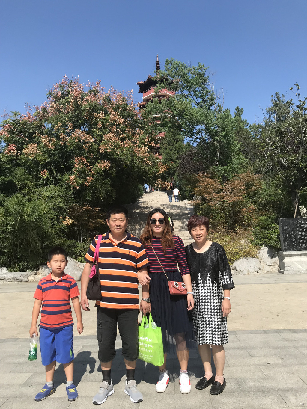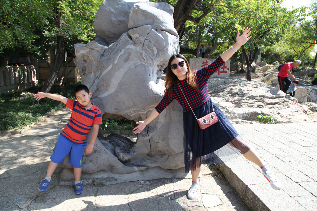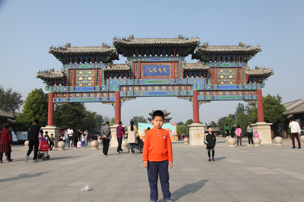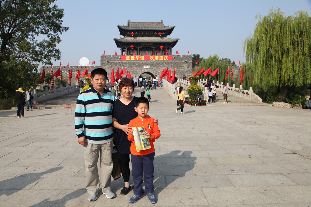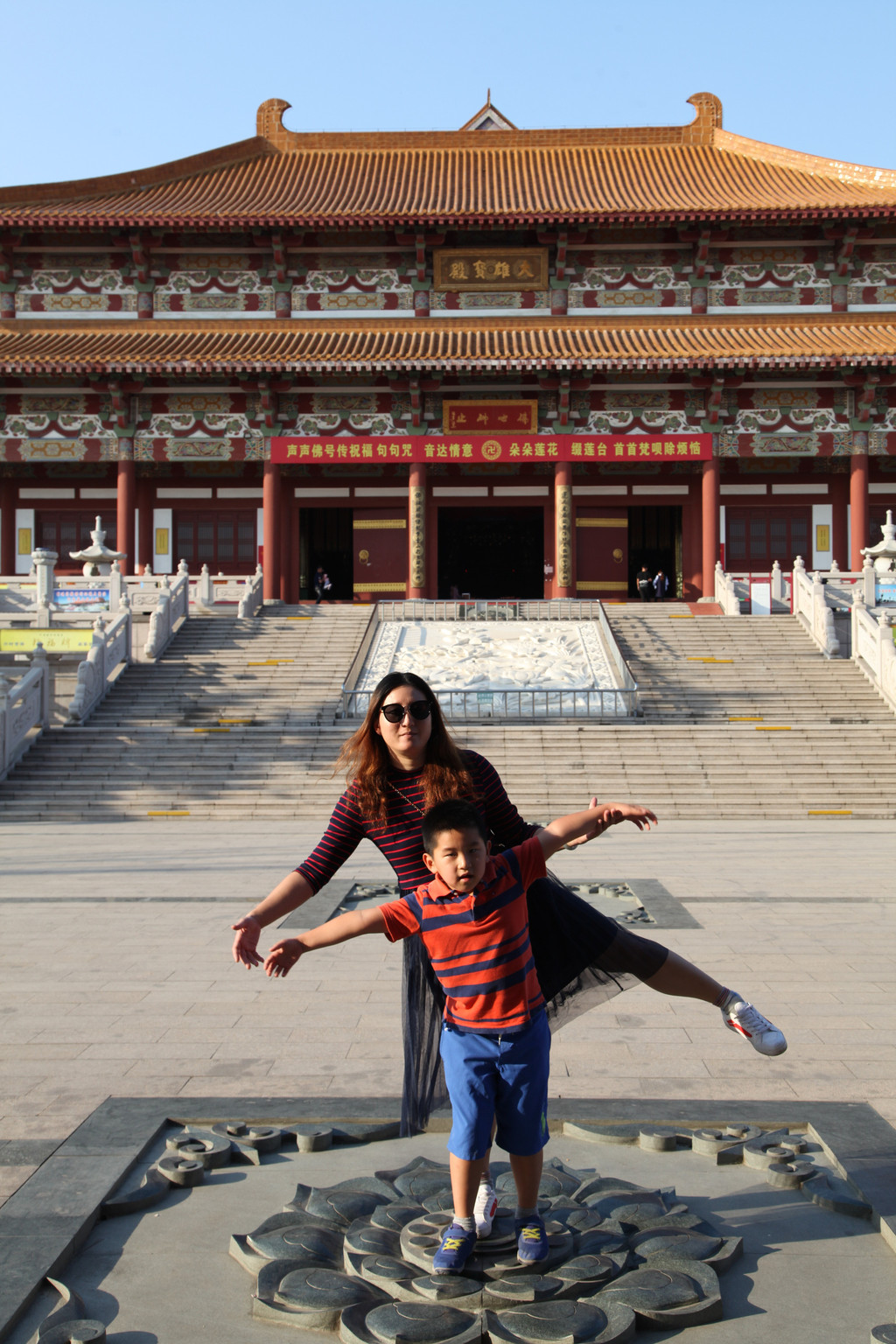 手拉手,快乐的一家人,徐州宝莲寺蟠桃圣境山门前的广场上