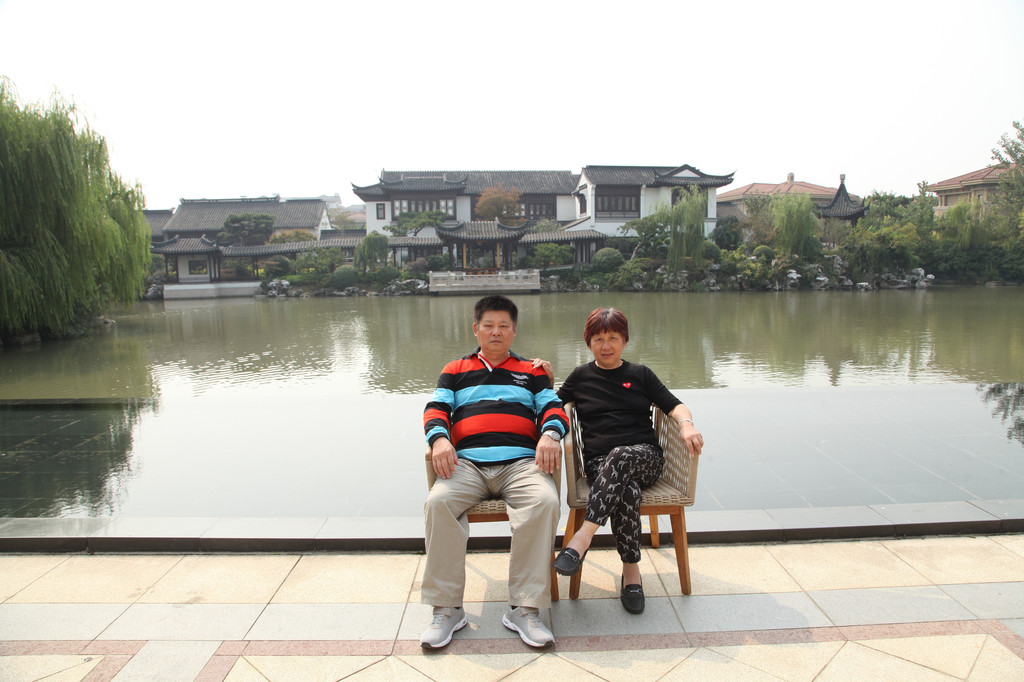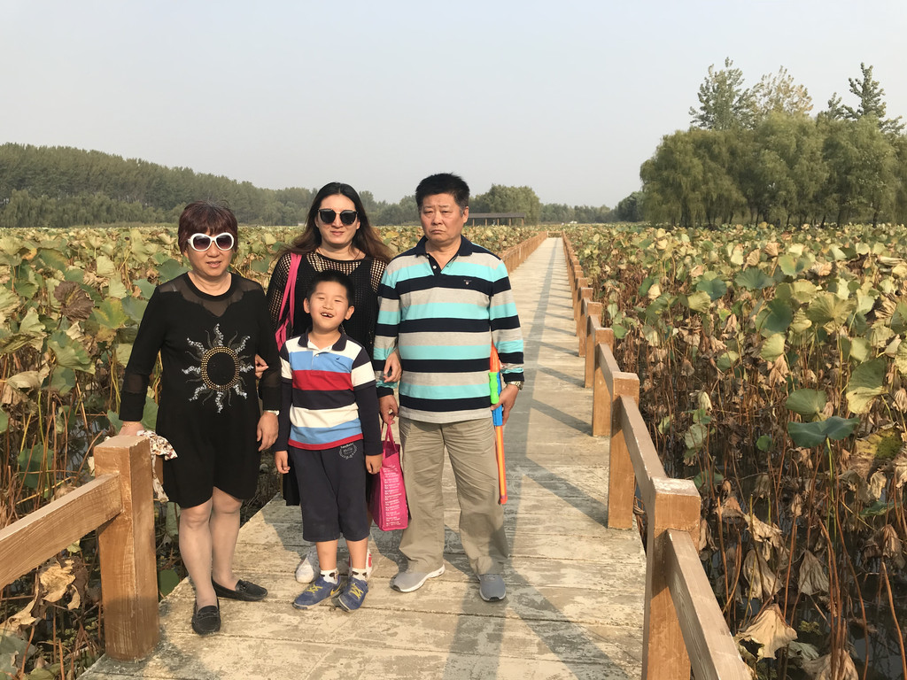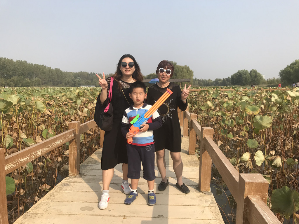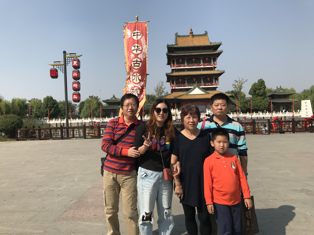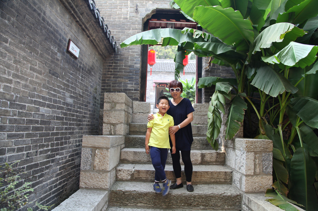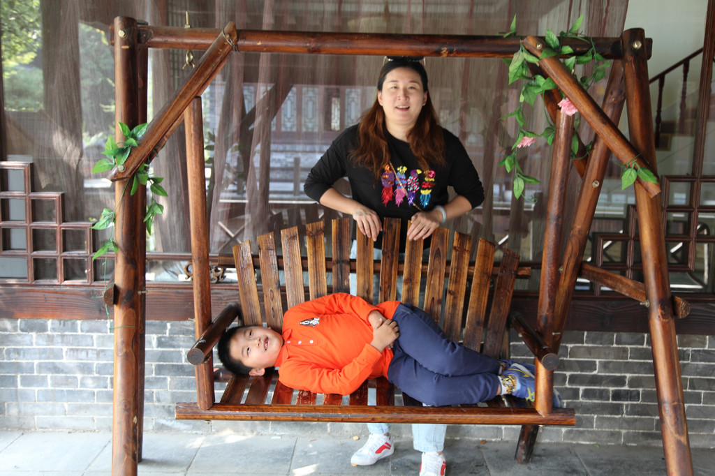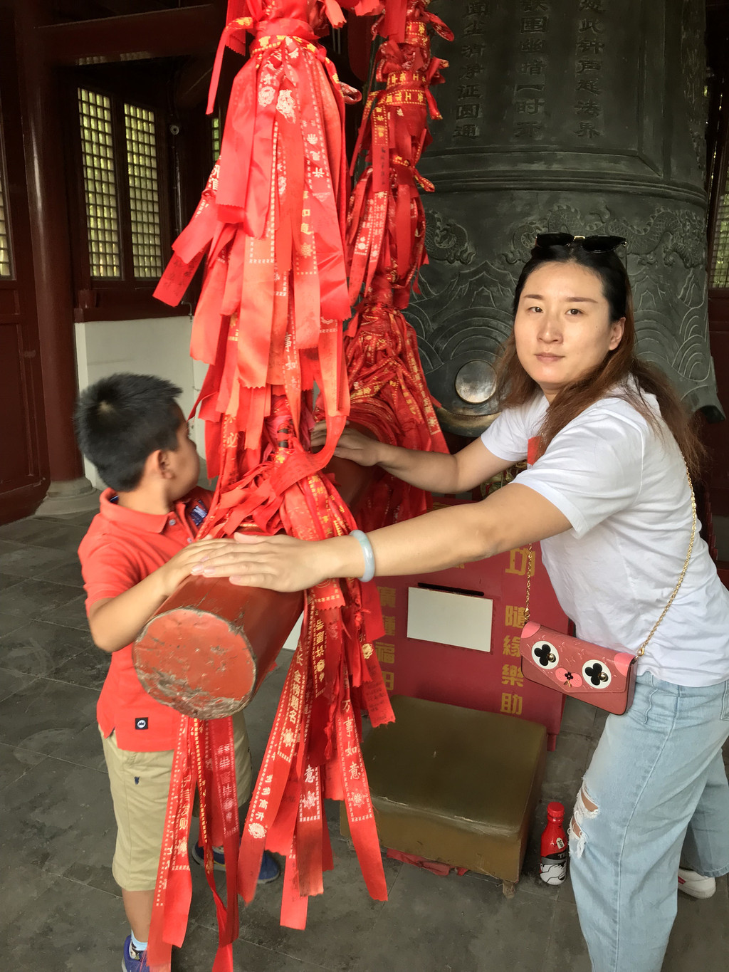 手拉手,快乐的一家人,徐州宝莲寺蟠桃圣境山门前的广场上