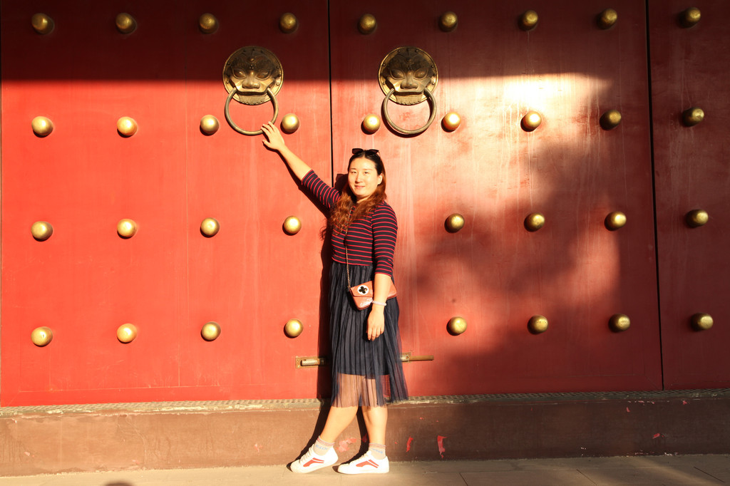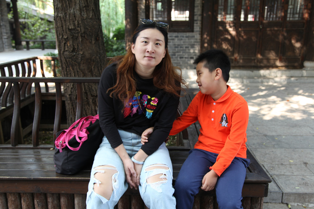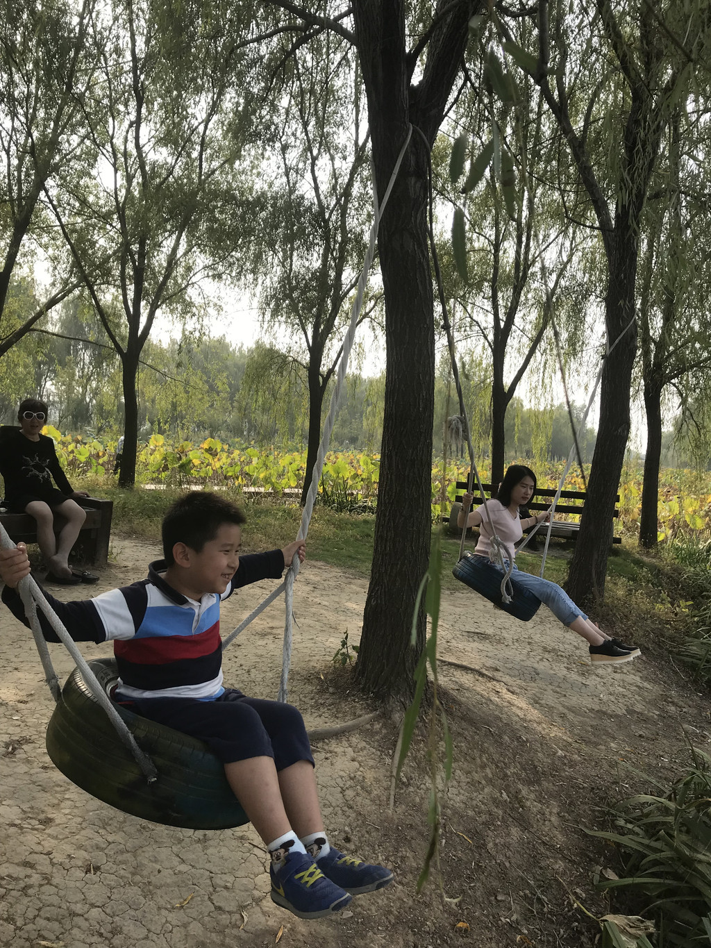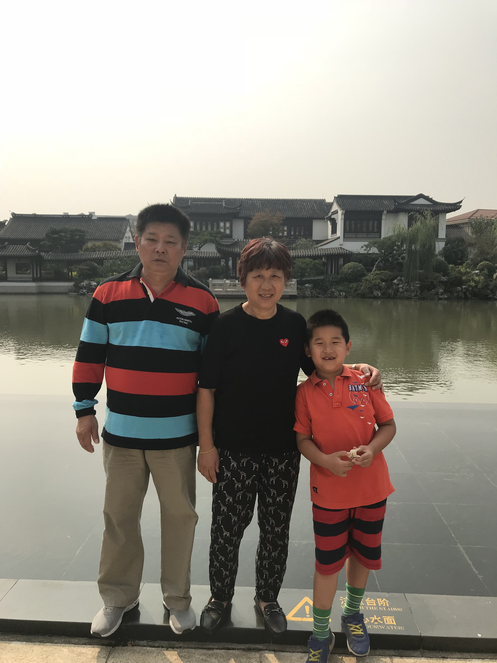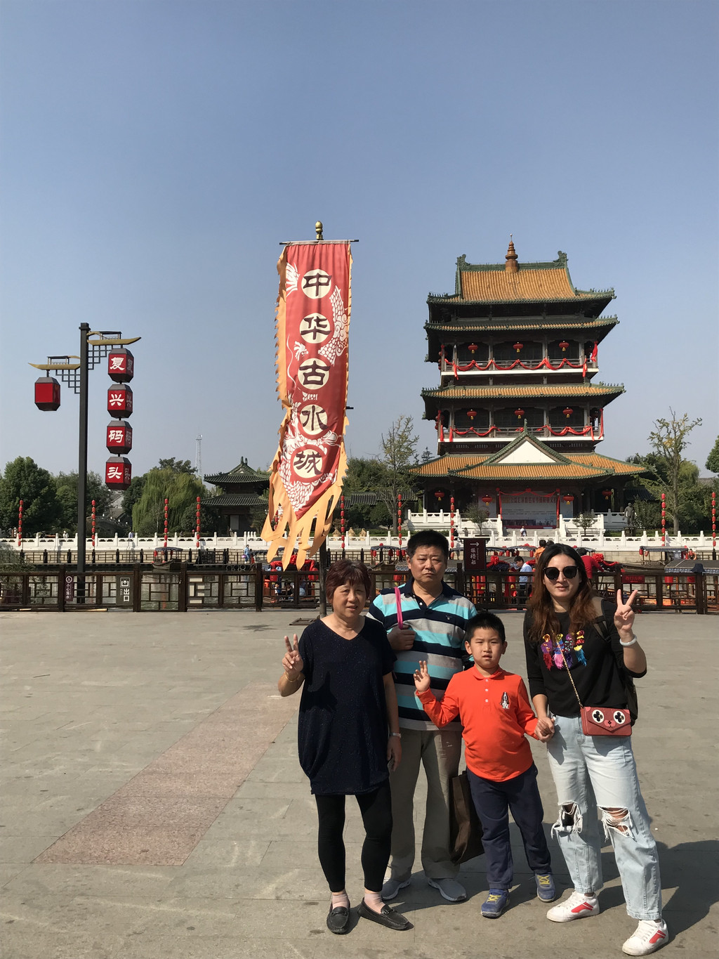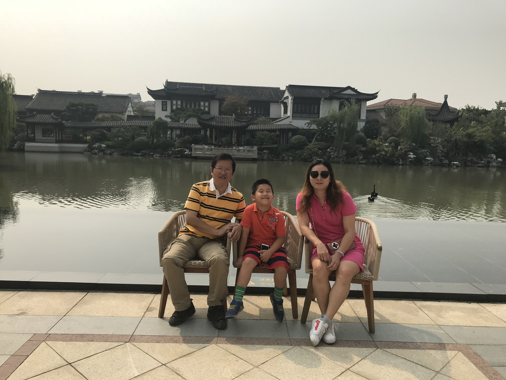 手拉手,快乐的一家人,徐州宝莲寺蟠桃圣境山门前的广场上