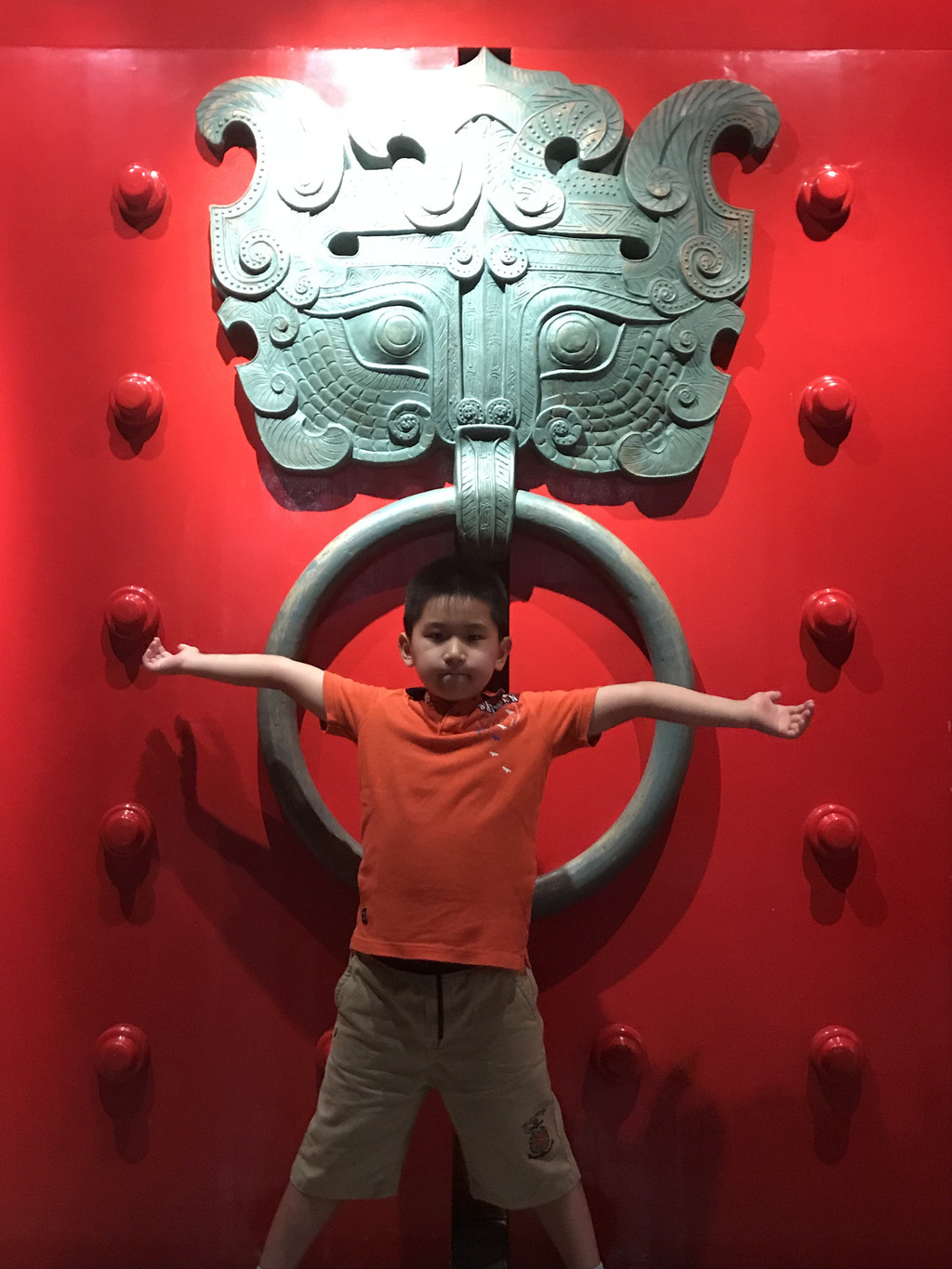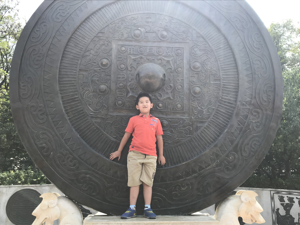 铜镜广场,昭示历史的轨迹。以铜为镜,何如以人为镜?小童子站在历史镜子的高度,俯瞰众生世界,狮子山汉文化景区