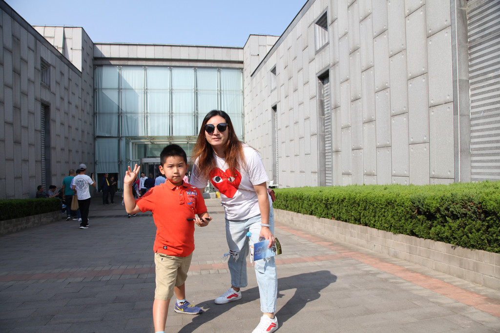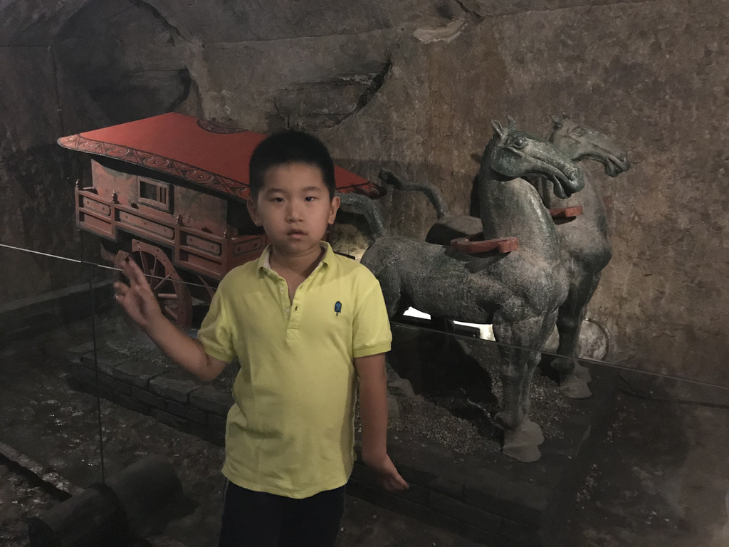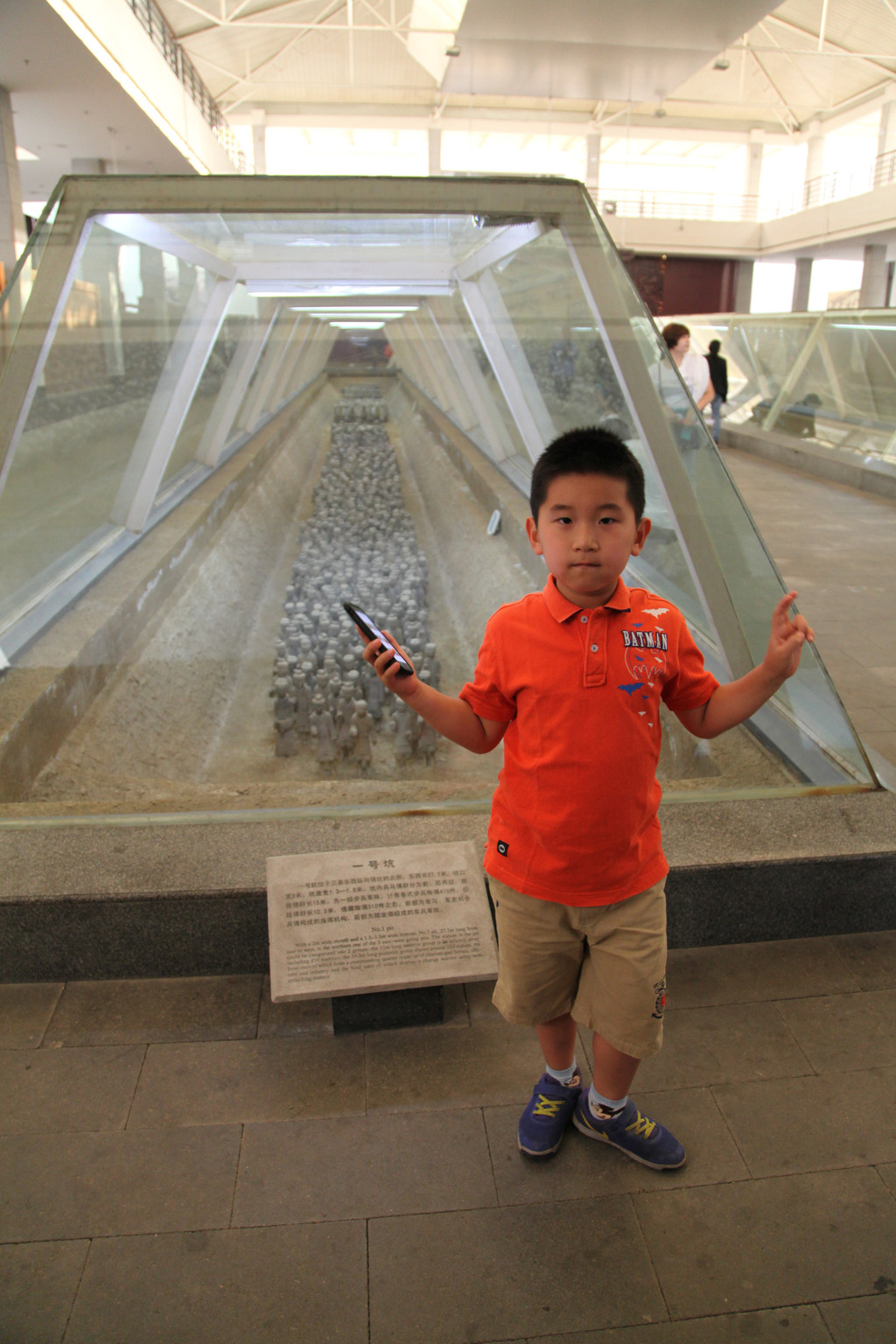 少年手捧讲解词导览,一路走一路学习,了解汉兵马俑的故事典籍,徐州汉兵马俑博物馆