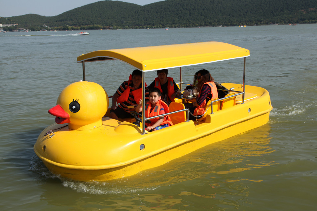 龙太子开着鸭子船,领着外公外婆,泛舟湖上。历史是否会回忆起,1000多年前的那个春雨朦胧的时节,一位士子,泛舟湖上,吟诵起《放鹤亭记》的一幕?徐州云龙湖