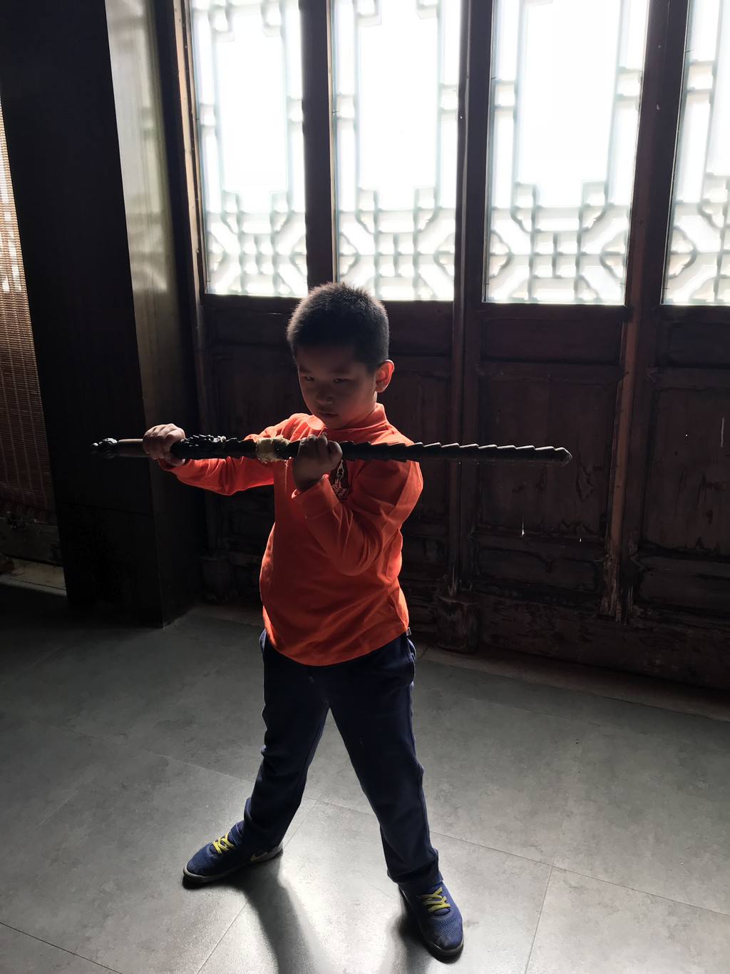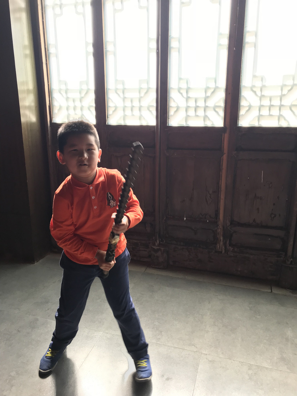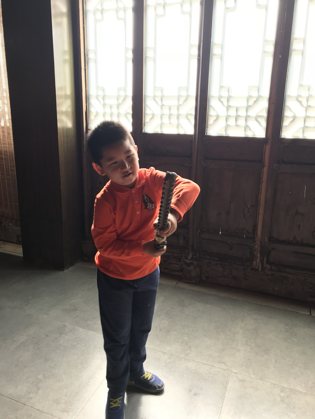 随时随地,都能找到乐趣,一段斜坡,一根木棍,都成为了龙太子的玩具,快乐随地,开心就好。佛教箴言,随遇而安,徐州宝莲寺