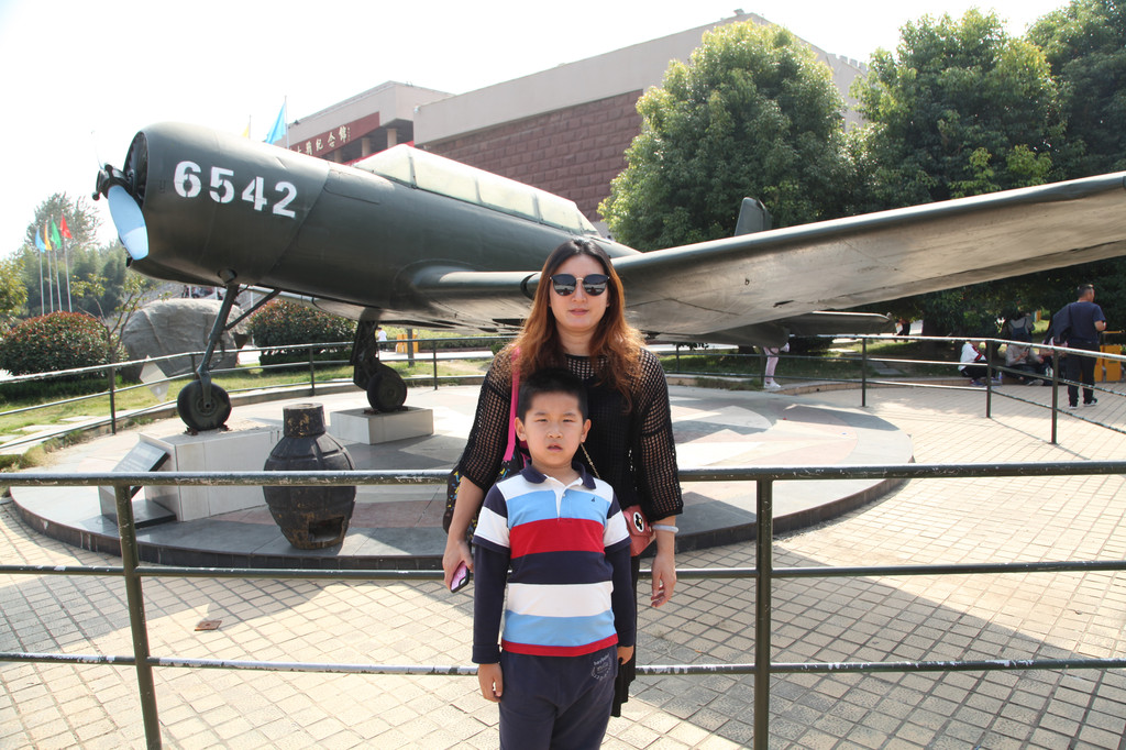 当时的军用飞机,边上放着的那个,应该是炸弹吧,看来这是一个轰炸机