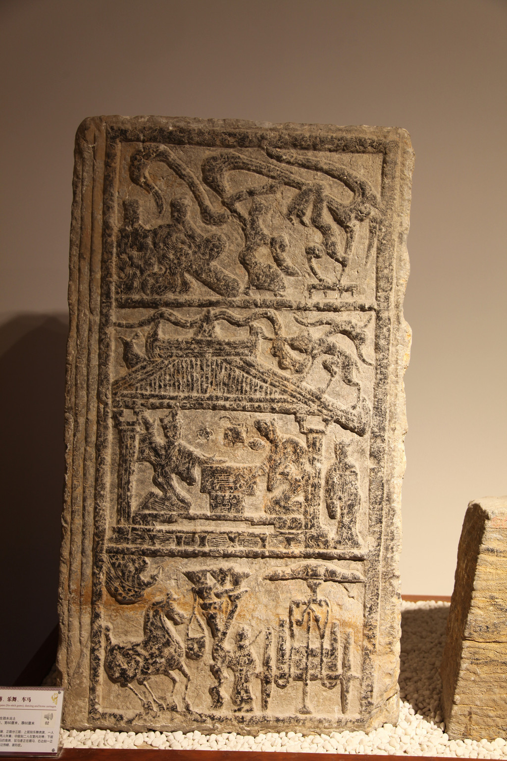 生活场景图,可以看出主人的地位很高,过着豪华奢侈的生活,无论是歌舞还是出行,都显出主人的高贵身份