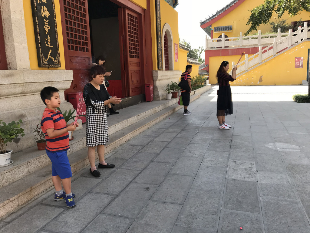 兴化禅寺,云龙山前的祈祷,龙太子俨然一个虔诚礼佛的小童子,和外婆一起点香敬佛