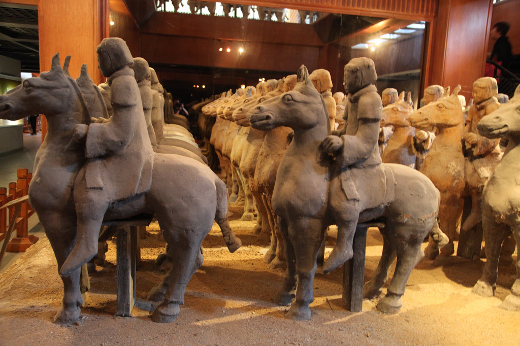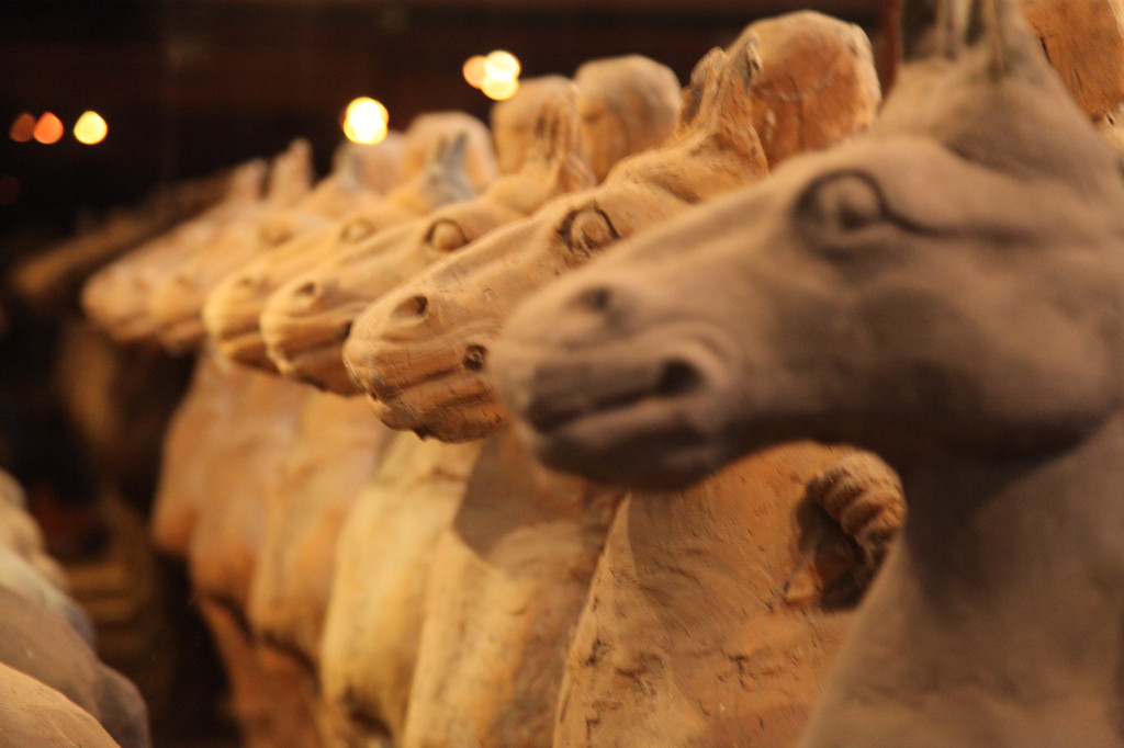 齐刷刷的马头,造型凸出,菱角分明,富有艺术气息,徐州汉兵马俑博物馆