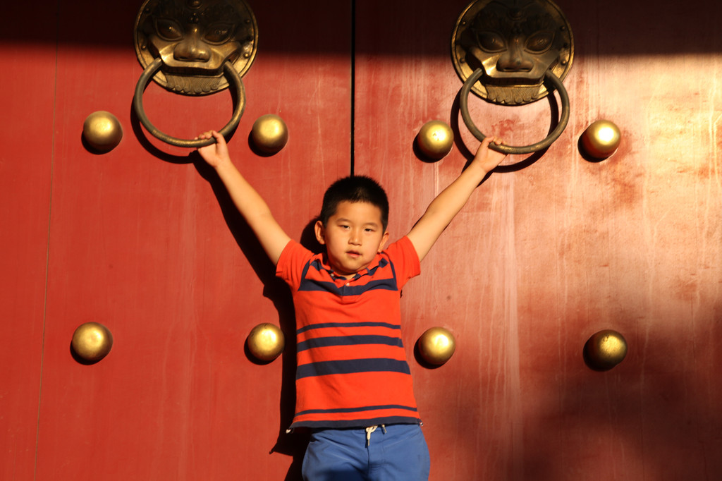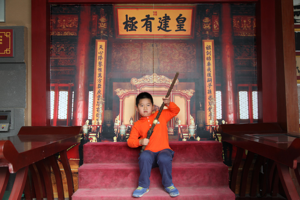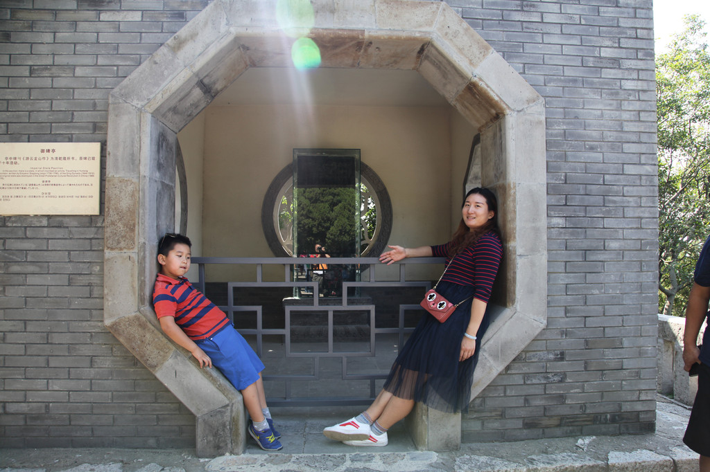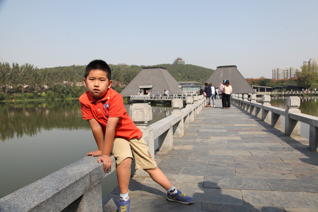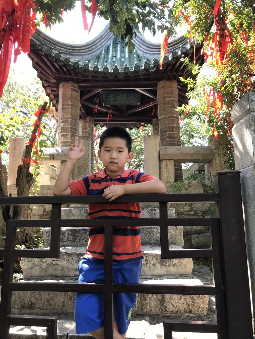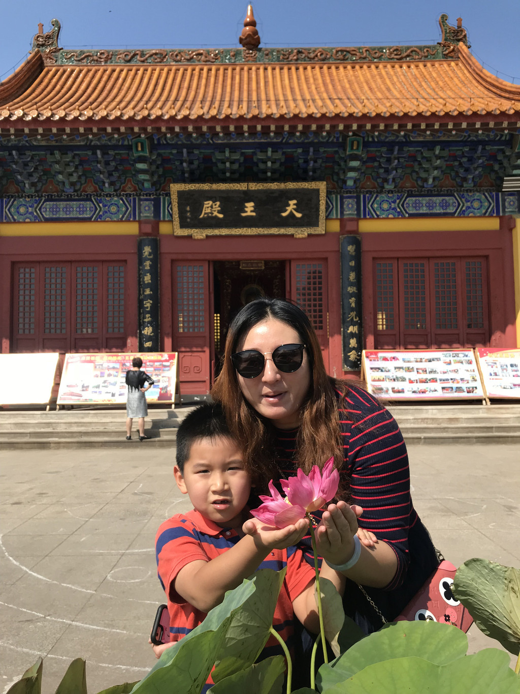 龙太子要骑在爸爸头上照相,就此留念,宝莲寺菩提圣莲广场