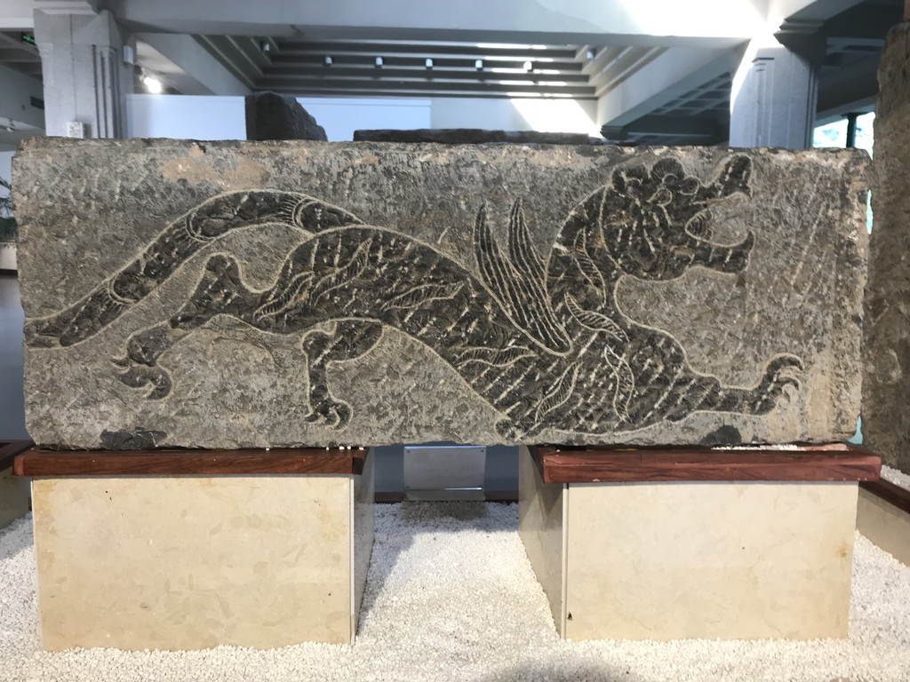 徐州汉画像石艺术馆大门,龙太子高高站在石阶上