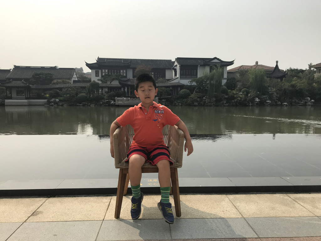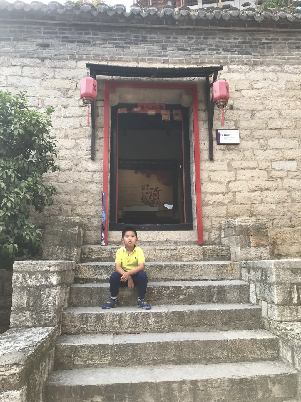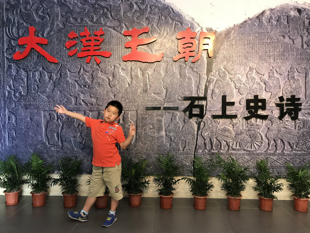 少年的思考,徐州汉画像石艺术馆前的石阶上