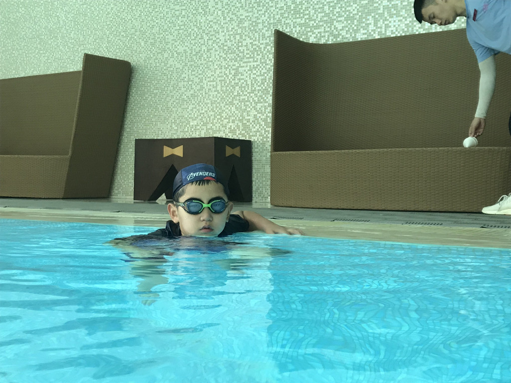 清晨,龙太子在酒店的泳池里游龙戏水,徐州绿洲皇冠假日酒店