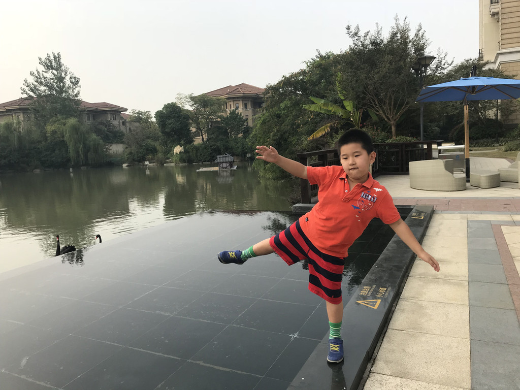 龙太子的平衡性还是很棒的,赞一个,单腿站立水边,却能够保持金鸡独立,身体的协调性很棒
