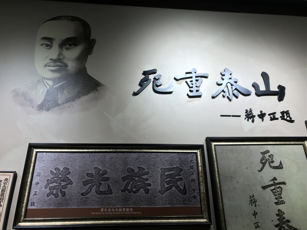 台儿庄抗日英勇牺牲的王铭章将军,时任国民革命军陆军第41军第122师师长,“死重泰山”、“民族光荣”是对其的褒奖