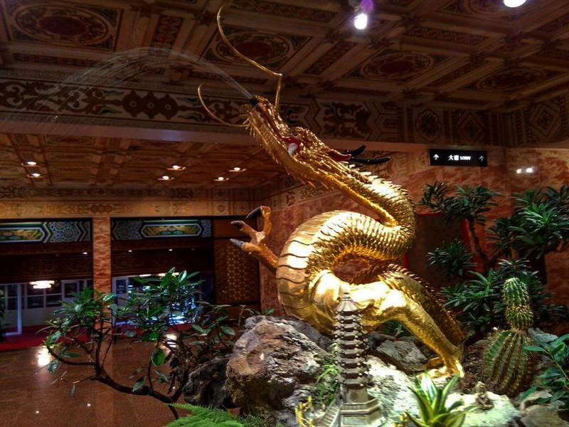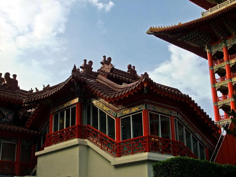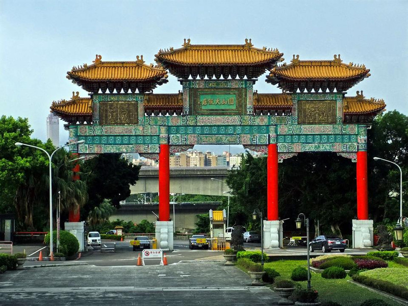 在中国式建筑上采用相当多的龙形雕刻,也有人称圆山大饭店为"龙宫",除采用龙形之外,也有石狮、梅花等中国建筑常用的图案。圆山大饭店中国宫殿式格局,概分为正楼、金龙厅、翠凤厅与麒麟厅等,七彩画梁、丹珠圆柱与金碧辉煌,遍悬各厅的画饰与浮雕。圆山大饭店经历过许多台湾的过去。记忆着数不尽的辉弘历史。圆山饭店的美,在中国式的雄伟建筑富丽堂皇的古典气氛;在于历史色彩和寂静清幽;在于它的远离尘嚣和闲情雅致。各色各样盘根错节的盆景奇石、连绵的大理石阶梯栏杆,号称世界最大的旅馆大厅与房间内部的明式、红木家具,更是有中国古代的味道。饭店独有的中国式宫殿外观,具有强烈的视觉冲击力。七彩画梁、飞檐斗拱、丹朱圆柱、琉璃金瓦,内外造型雄伟瑰丽。圆山饭店与龙有无尽渊源,整个饭店通体上下,从门窗、梁柱到壁画、天花板,随处可见活灵活现的飞龙。据说蒋介石在规划圆山大饭店之初,即设有秘道通向附近的剑潭和北安公园,因此,饭店本身除了是台北市内一处极佳的观光胜地外,秘道传说更为圆山饭店增添一抹神秘色彩。西门町