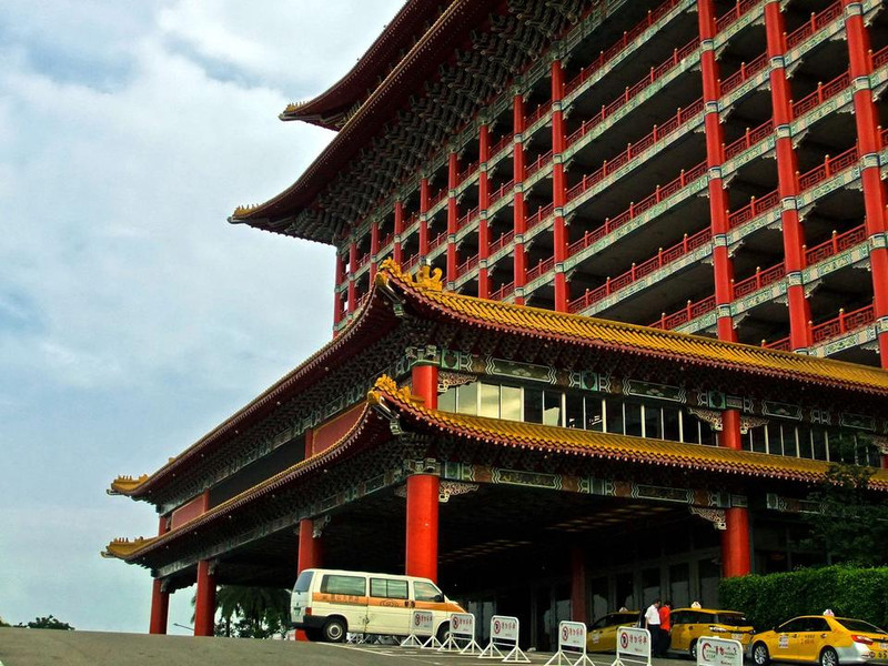 )1999年7月开工,2003年10月17日竣工。高508米,地上101层,地下三层。101被云雾笼罩着101大厦内巨大的阻尼器,因为台湾是地震多发区,阻尼器可以有效降低地震对101大厦所造成的危害。圆山大饭店我们所居住的圆山大饭店,是一家位于 台湾 台北市中山北路四段一号的传统建筑造型饭店,历史悠久,位于剑潭公园旁,是台北市的地标之一。