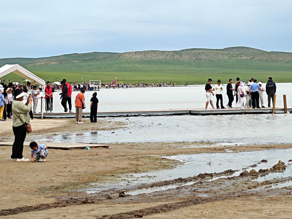 顺着长长的湖岸线漫游,脚下的土地松软而湿润,仿佛在给双脚做按摩。湖水微咸中带着一丝清甜,据说这是因为湖水中含有丰富的碳酸钙等矿物质。