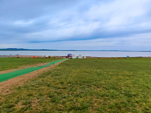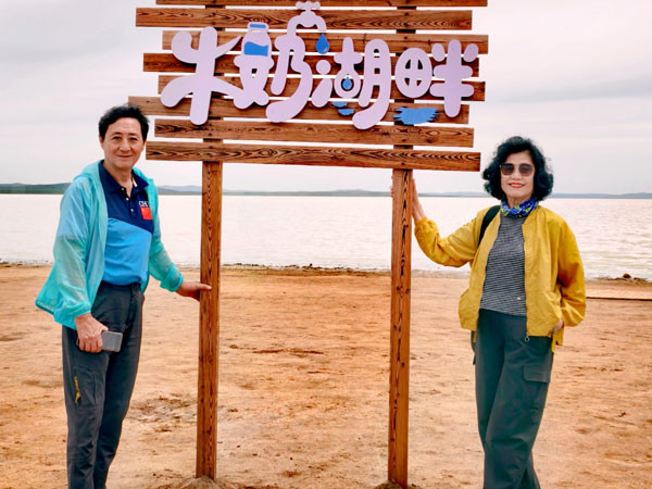 经过大约近两个小时的车程,团队于10:40顺利抵达牛奶湖畔。位于内蒙古锡林郭勒盟太仆寺旗贡宝拉格苏木的牛奶湖,别名白音查干湖、查干淖尔,是一个天然碱水湖,面积约10.8平方公里,是距离北京最近的天然草原锡林郭勒草原的一部分。