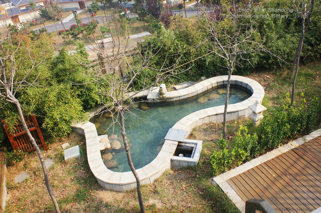 特别推荐的还是公共泡池。建在半山的无数个功能独特露天的泡池,俨然就是一道美丽的景致。泰山温泉城的自然景观丰富,亲身一游果真不同凡响,和每天在水泥都市中所见相比较,真是有世外桃源的感觉,来到这里是真正的放松了。泡在温泉里,面对就是一望无际的山景,感觉超棒,是那种在森林里泡汤的感觉。温泉水质滑润,整个人都很放松。