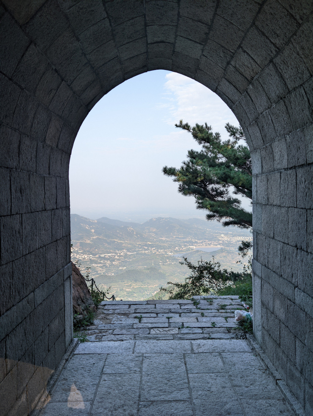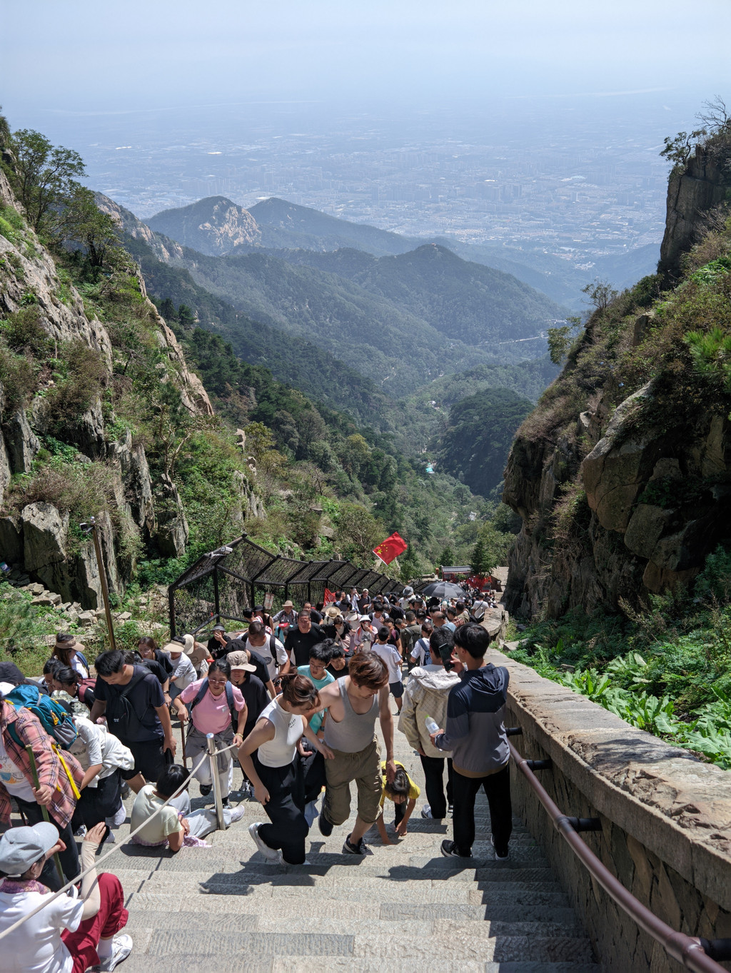 当攀登至南天门时,泰山壮丽的景色尽收眼底。