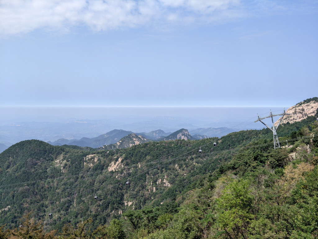 南天门后的广场可以看到桃花峪的缆车,还有明显的天际线。