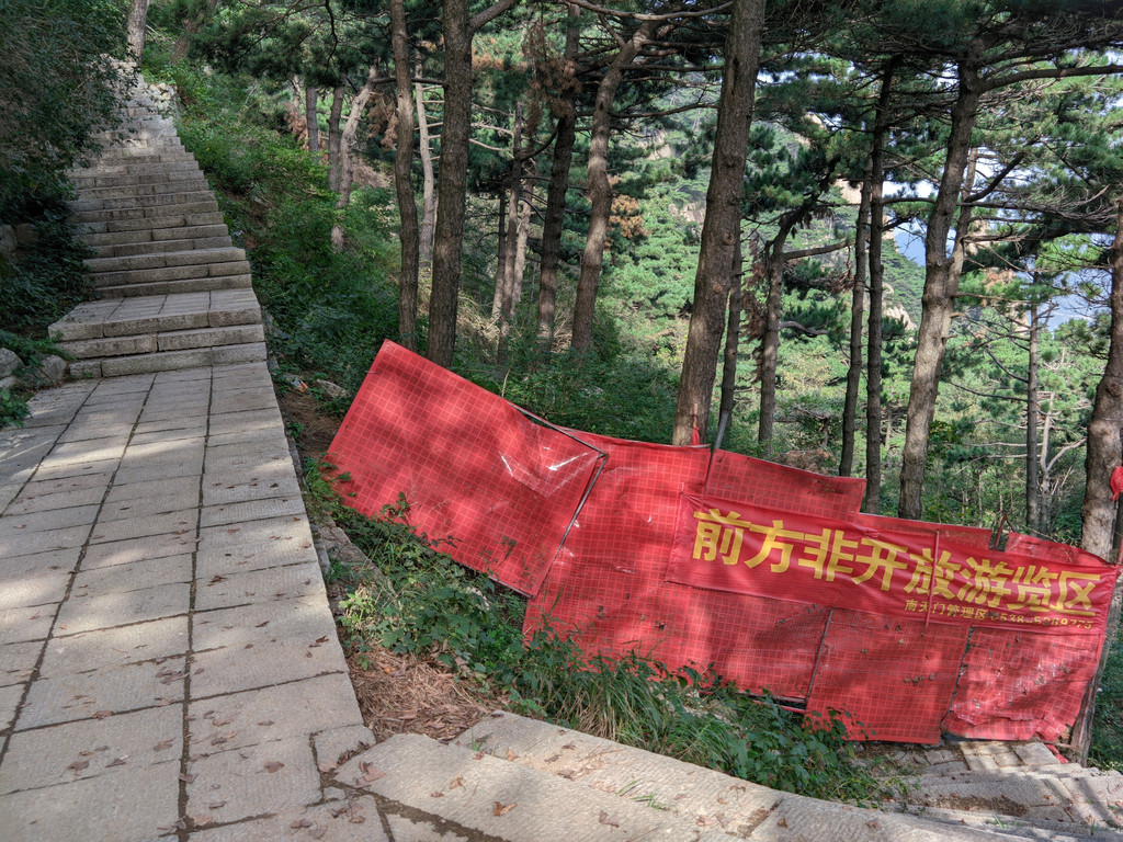 从后山走的是秦御道,据说是当年秦始皇封禅走的路线。也就是泰山大名鼎鼎的后山天烛峰路线。不过目前这条线路,景区官方列为不开放区域,目前并不建议走。