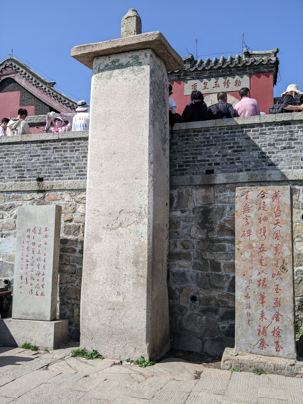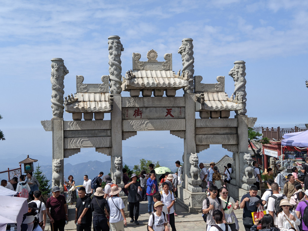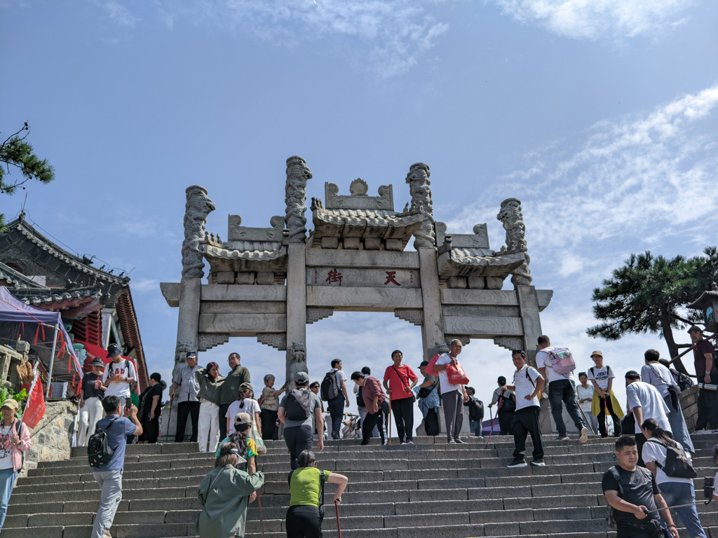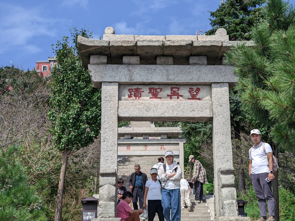 快到碧霞祠的山脊一侧,有一石坊为“望吴胜迹”,这里就是望吴峰,其海拔1472米处有我国唯一高山孔子庙,庙内供奉“文帝”孔圣人。体力关系,我没上去孔子庙。