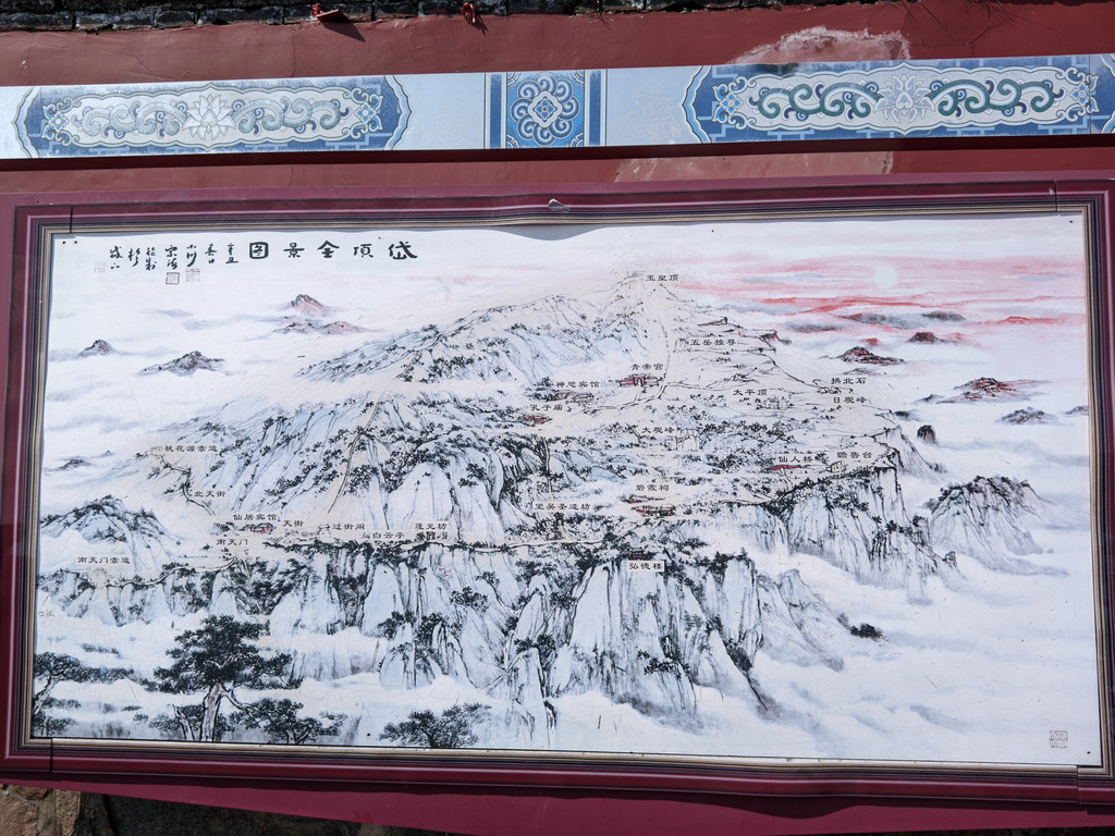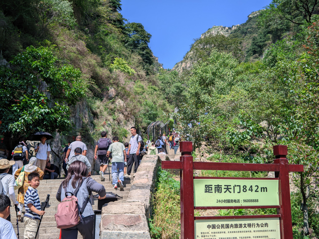 走过南天门,后面的道路就难度不大。按照指示路线,一路走向玉皇顶即可。沿途配套充分,就是物价有点高。