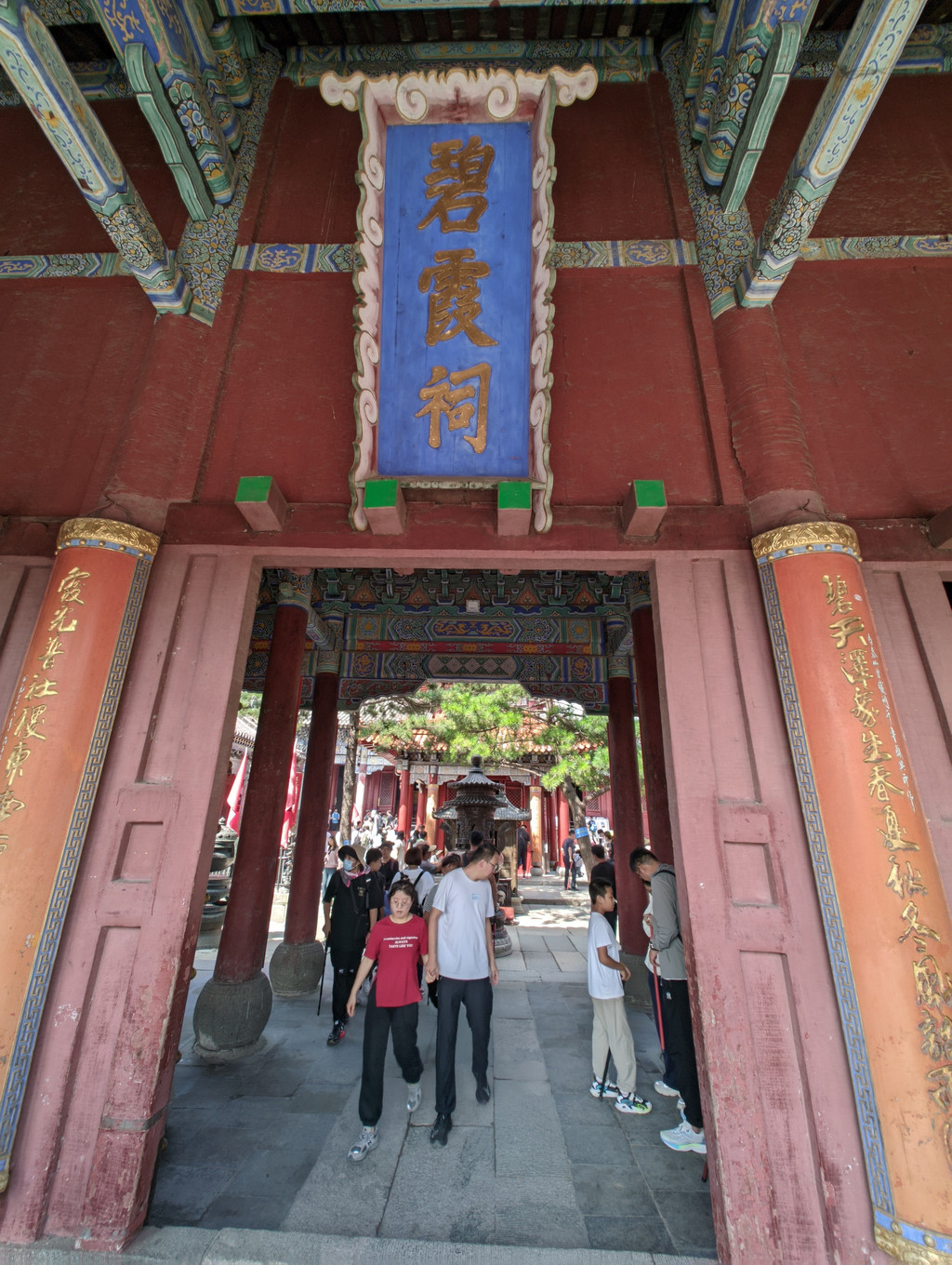 碧霞祠前的西神门,不要急着过去,走右边通道,先去祭祀一下碧霞元君,免费提供香的。