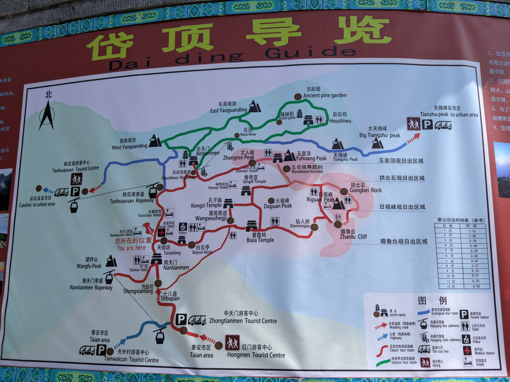 第一次登泰山,我以了解、欣赏泰山的人文、自然风光为主,夜爬泰山啥也看不清,所以不考虑,成本原因不想做山顶过夜,日出自然也不考虑。日落时间合适倒是可以看看,一切随缘。