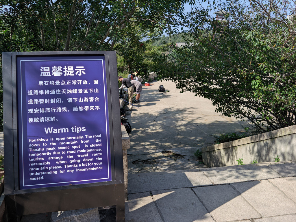 因为后石坞索道停运,从索道边的道路可以到后石坞景区,这个景区是开放的。下去后左边有个厕所,卫生尚可,一定要去!后面都没有厕所,切记!