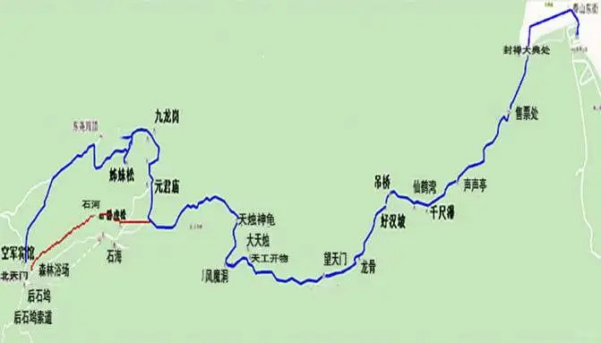 2、天外村线路,天外村—中天门—南天门—玉皇顶。这条是最省力的路线,天外村有景区交通车可以到达中天门。