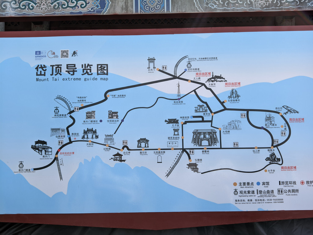 我走的路线是南天门--天街--碧霞祠--大观峰--青帝宫--五岳独尊--玉皇庙,也是最常走的路线。