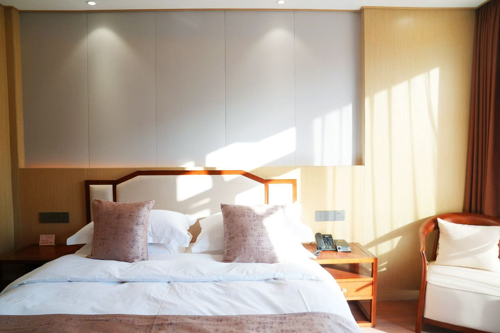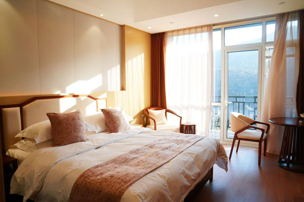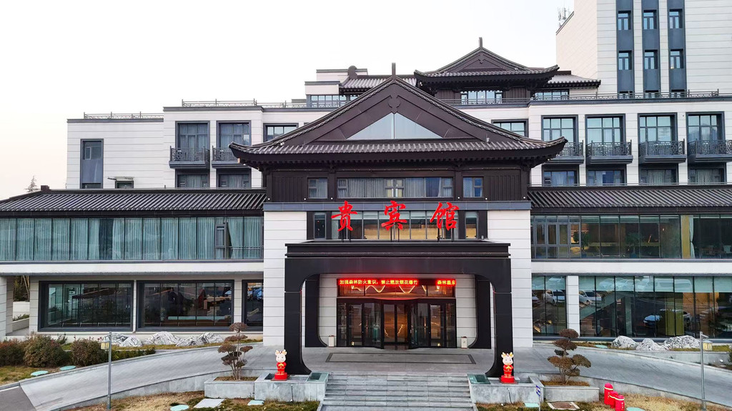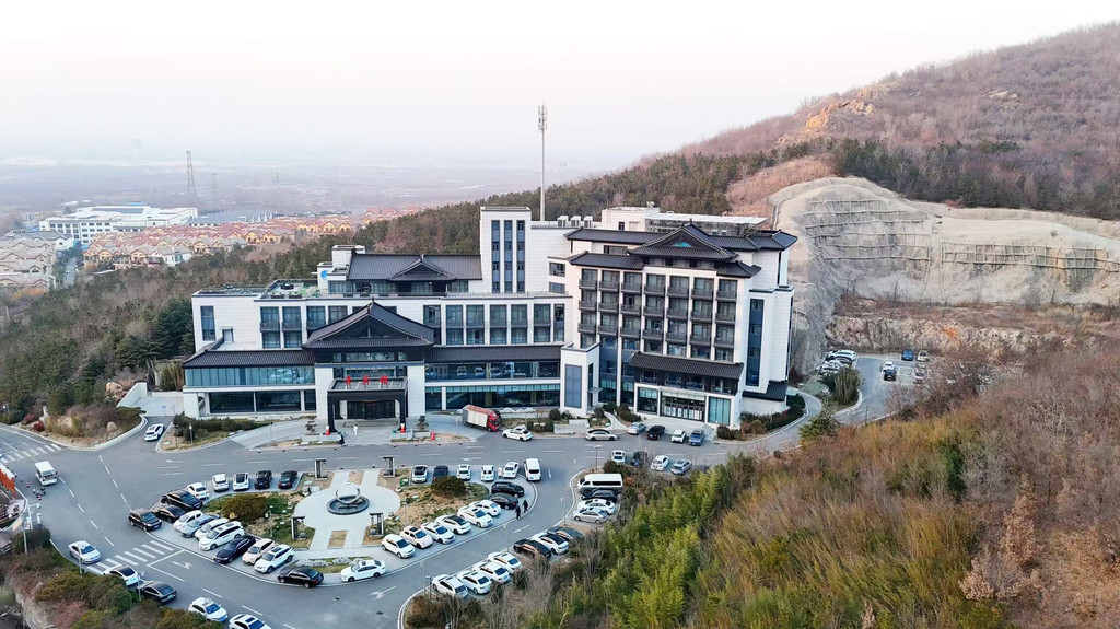 祖徕山森林温泉康养度假谷位于青山绿水之间,贵宾楼酒店依山而建,新中式风格典雅大气,我入住的湖景房,站在阳台上,就可以祖徕山的冬日风光。