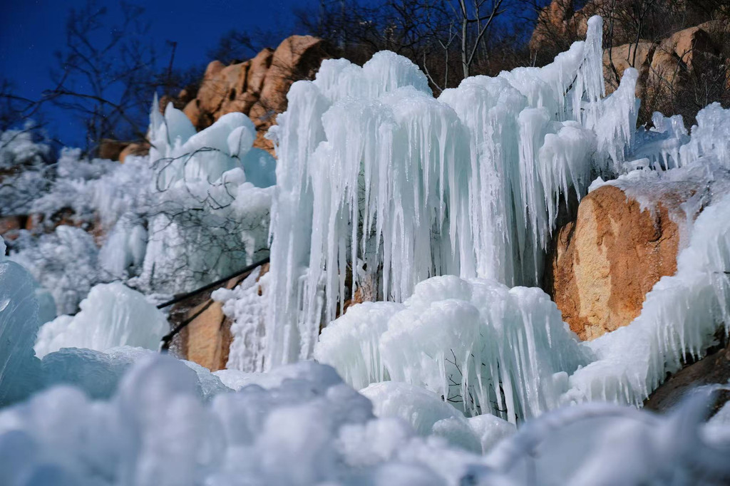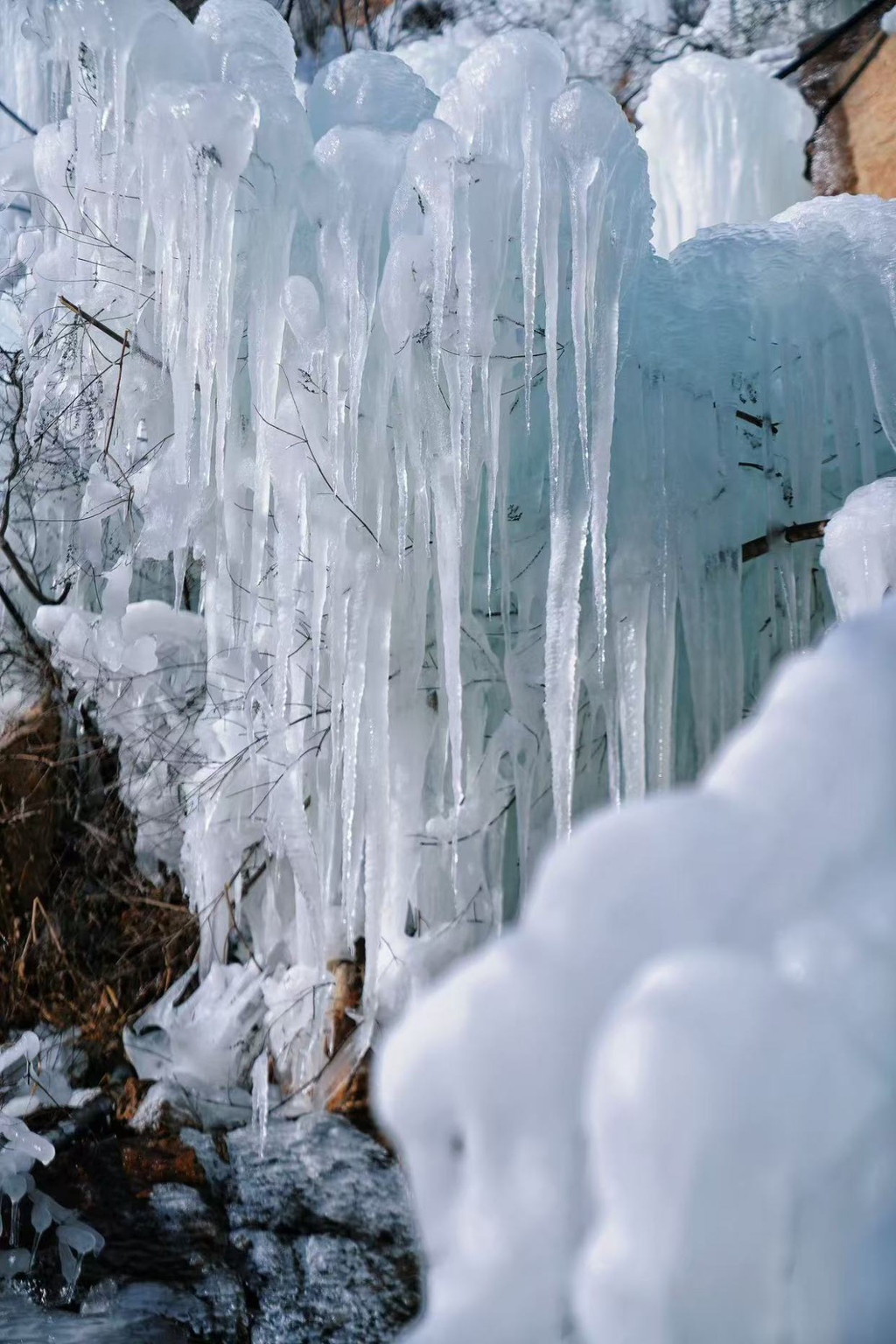 泰山九女峰的冰瀑,是大自然给予我们的冬天特有的浪漫,他们顺着山势倾泻而下,形成了千姿百度的冰花,在冬日的暖阳下晶莹剔透,宛如玉树琼枝,拍照十分好看。