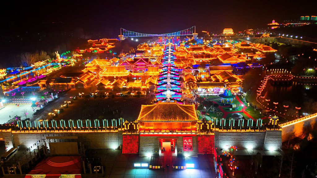 泰安之旅第一站,我来到了大宋不夜城,踏入大宋不夜城,仿若穿越回了千年前的北宋盛世。灯火辉煌,人潮熙攘,仿佛置身于一幅繁华热闹的《清明上河图》之中。这里的一砖一瓦、一草一木都散发着浓郁的历史气息。