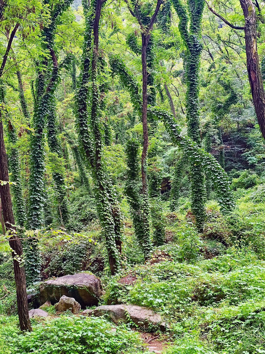 随后沿东御道徒步登山,比红门路线更显真切。石阶被岁月磨得温润,地锦爬满沿途侧柏,风穿过枝叶时带着山的清冽。