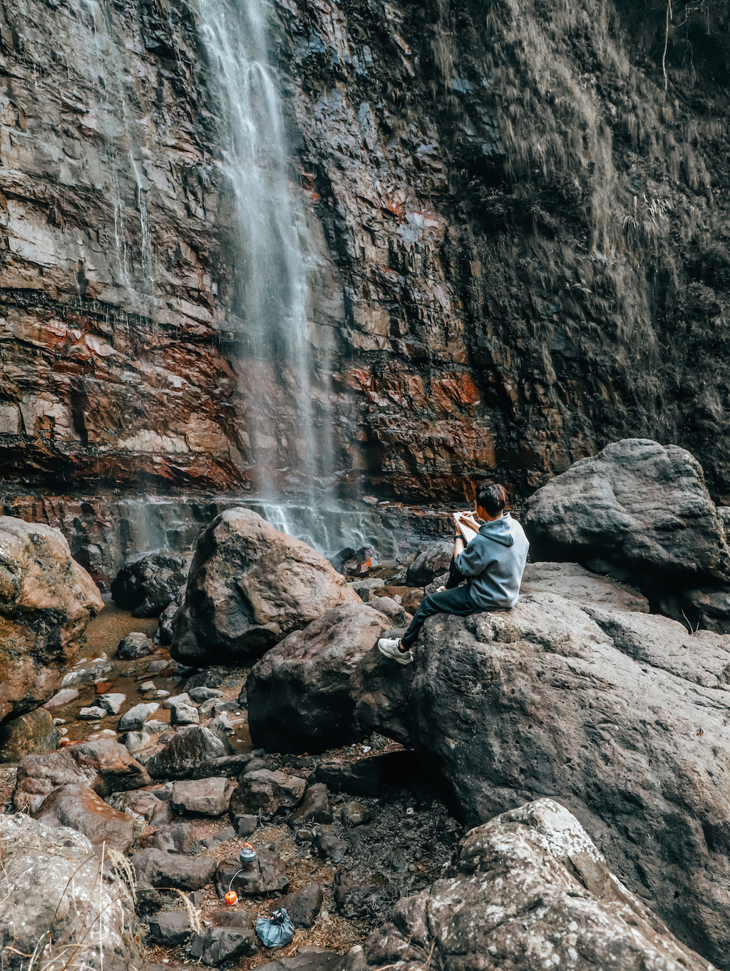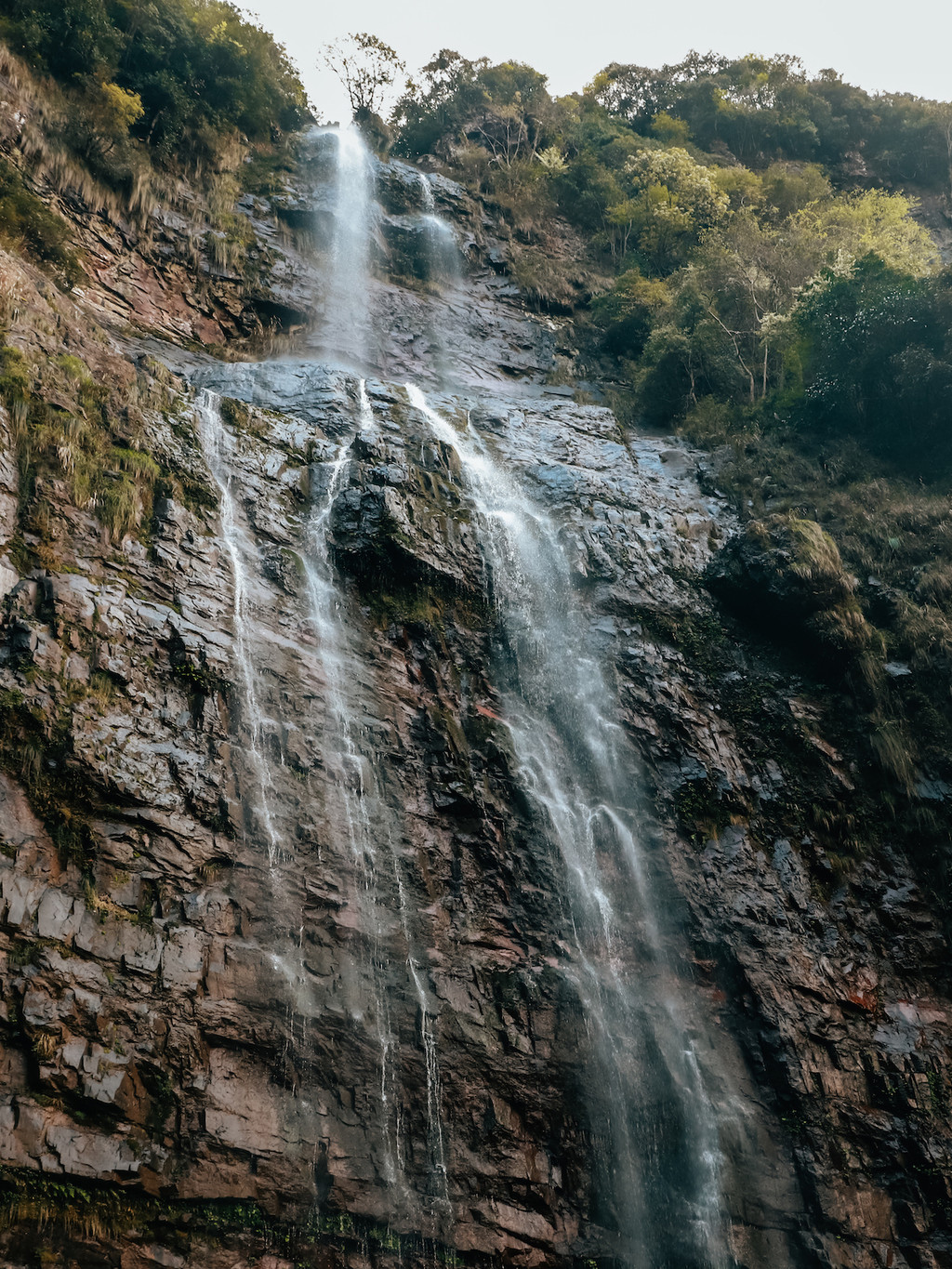 短暂的停留,看看瀑布飞流直下的壮观场景。运气好的话,还可以遇见彩虹。它由上游两条溪涧在瀑布头并行,跃下高约60米的悬崖,形成”双龙"瀑布,有人还称之为"夫妻瀑",再加上位于红岩隧道旁,"红岩双瀑"也因此而得名。