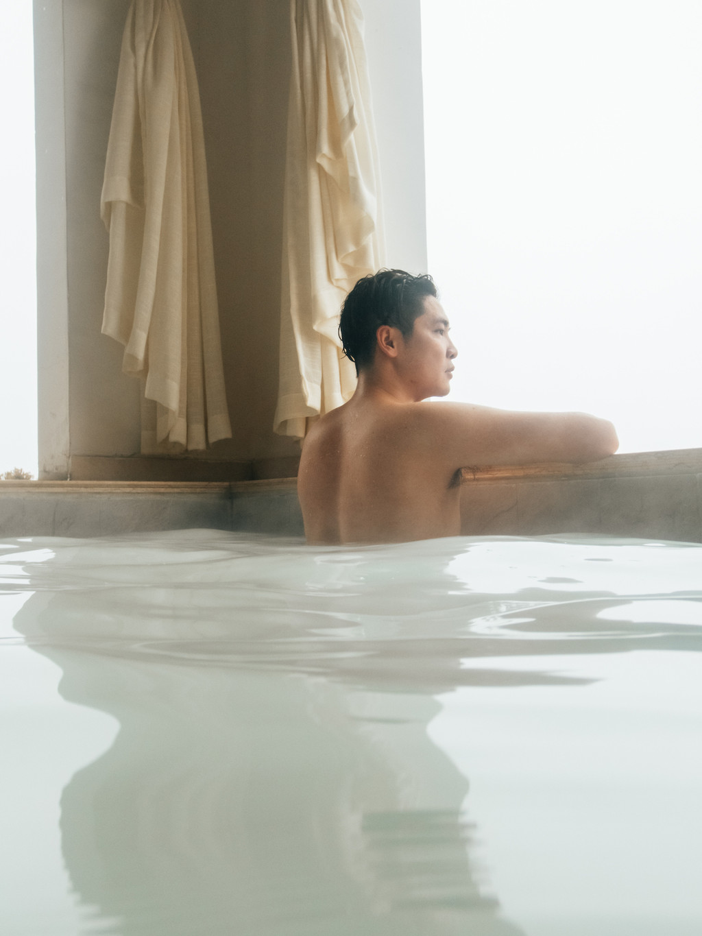 在泰顺,温泉古称”神水”。氡泉泉水神奇之处,常年水温 62℃。号称出水量大、出水温度高、医疗价值高而被赞誉为“浙南大温泉”,据说对风湿病、并节炎、银屑病、神经性皮炎等疾病有显著疗效,我就权当是预防了。温泉的种类很多,观景的、艾叶的、菊花的等等,图里泡的是牛奶浴,45度,刚下水时略烫,慢慢适应后结合这咋暖还寒的天气就刚刚好。