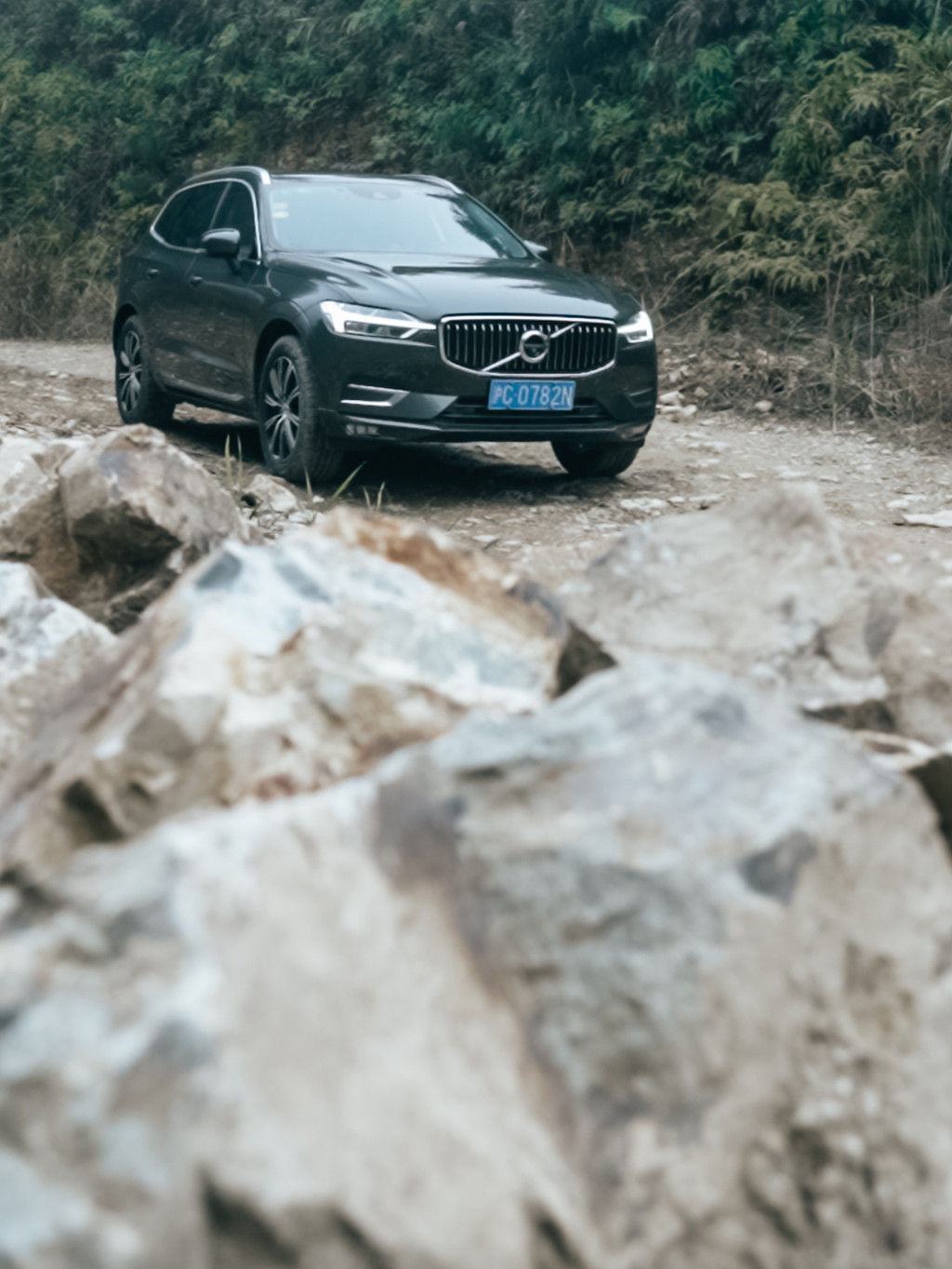 驾驶着沃尔沃XC60穿梭在山野间,有些道路上会铺一些砂石,沙石的颗粒小,我下车在路上走都容易滑倒,还好沃尔沃XC60搭载四驱系统 + 4C 自适应底盘都轻松解决了,有驾驶乐趣又不会颠簸。