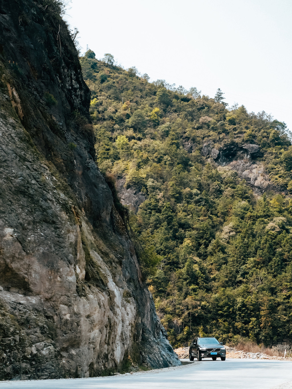泰顺承天氡泉自然保护区的崖壁峻峭的峡深 350 米,盘山路一路向上,峡谷深切。沃尔沃XC60动力充足,这盘山公路跑起来自然很轻松,普通公路开起来没什么区别,不同的是盘山公路会随着海拔的化升高植被从竹林,变成了树林,间歇裸露的大石头,就知道已经离人群很远了。