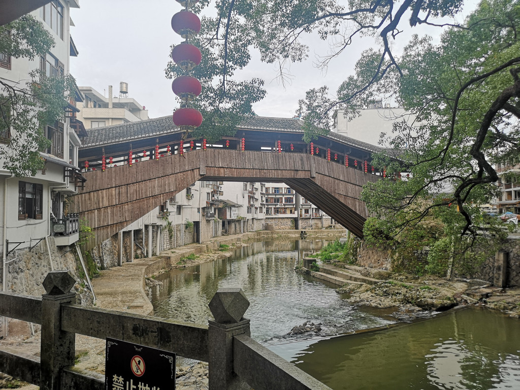 按当地人介绍又在溪水边游玩一阵后回到大路上步行回三魁镇,走到三魁汽车站附近已经很疲乏,准备能找到车的话,租车去薛宅桥和永庆桥,问一下附近的人,告诉前面茶叶店门前的那辆车会去,过去问一下往返价格,告知是30元,一想往返需要大概10几公里,还要等我们游玩,于是上车先去往远一点的永庆桥,又是一座平桥,同样在中间有一石桥墩支撑,桥一直在使用,桥上桥边均有当地人,虽不算热闹,但相比刘宅桥边已算人气颇旺了。过桥后在另一侧拍摄,虽未拍到全貌,但总体已经在镜头中,廊桥之美也完全可以体现了。回来到薛宅桥,是一座木制拱桥,周边住户很多,大人孩子往返桥两边,看来一直还是发挥着连接两岸人民生活的作用,除泗溪北涧桥外,这里是此行最热闹的廊桥,虽然没看到其他游人,但本地人往返期间,而且桥的两侧好多住户,所以薛宅桥更像大隐于市,很接地气。