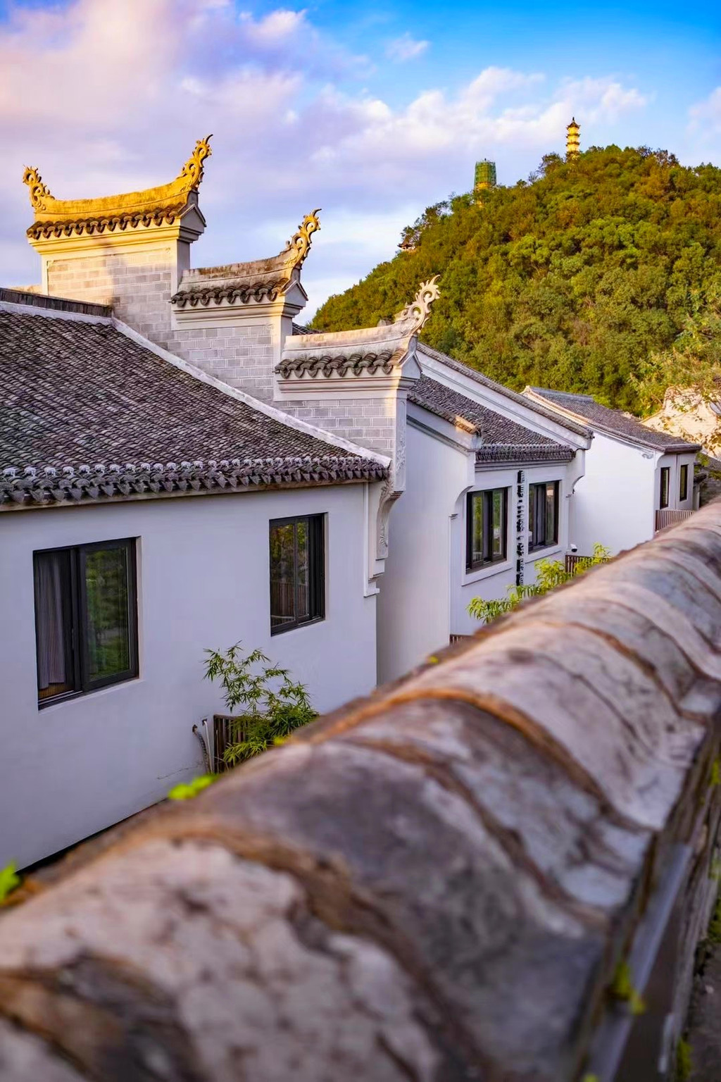 从龙兴寺出来,我们沿着台阶拾级而上,与城墙并肩前行,继续探索巾山的故事,天宁寺后靠峭壁,就势而筑,三教圣山巾山前绕灵江,下抱古城,地形殊胜,虽然高不足百米,却一山藏八寺,上下有四塔,西麓双塔与山顶双塔此起彼伏,双峰并峙,四塔同辉,遂成“巾山塔群”,为台州文物昌盛的徽记。