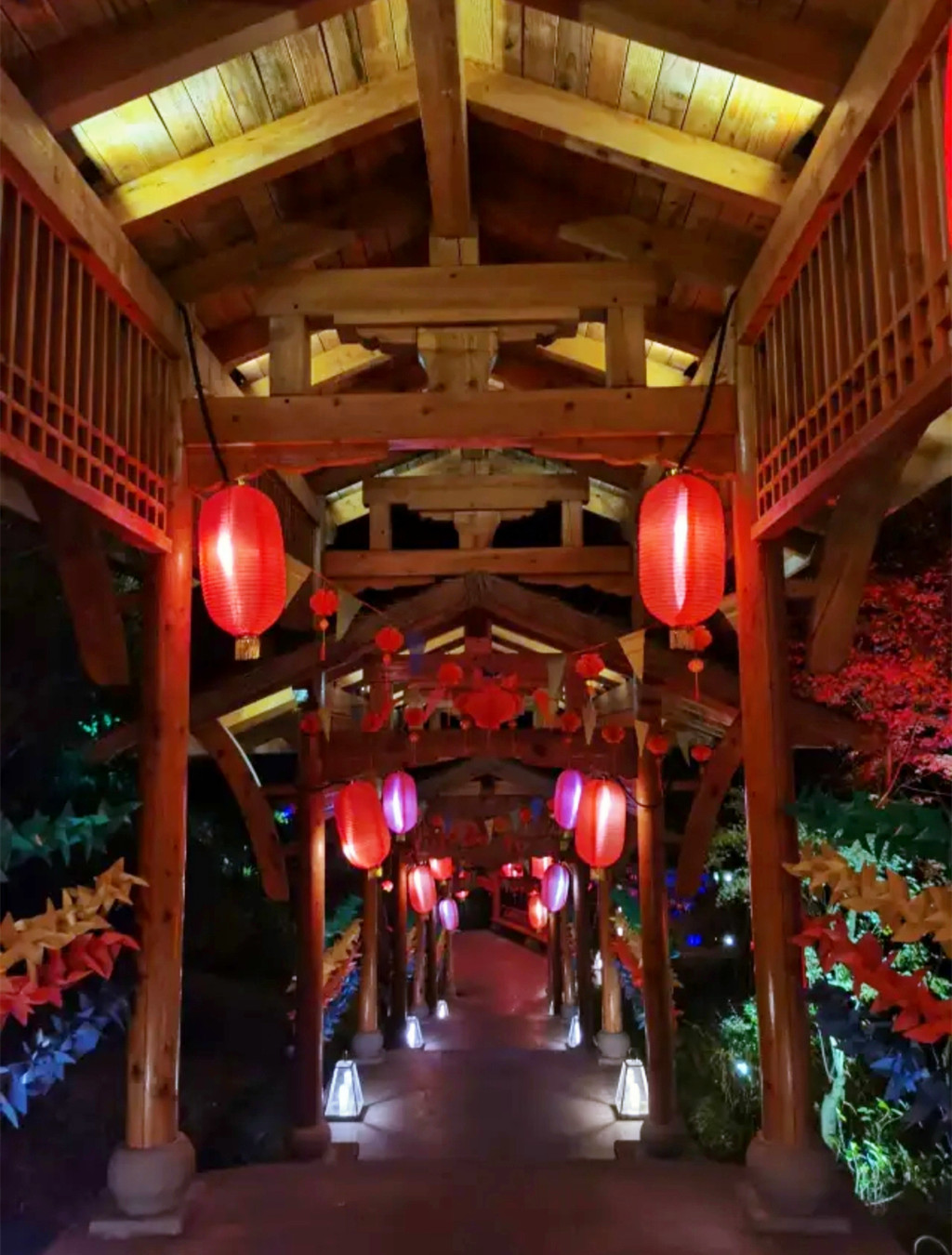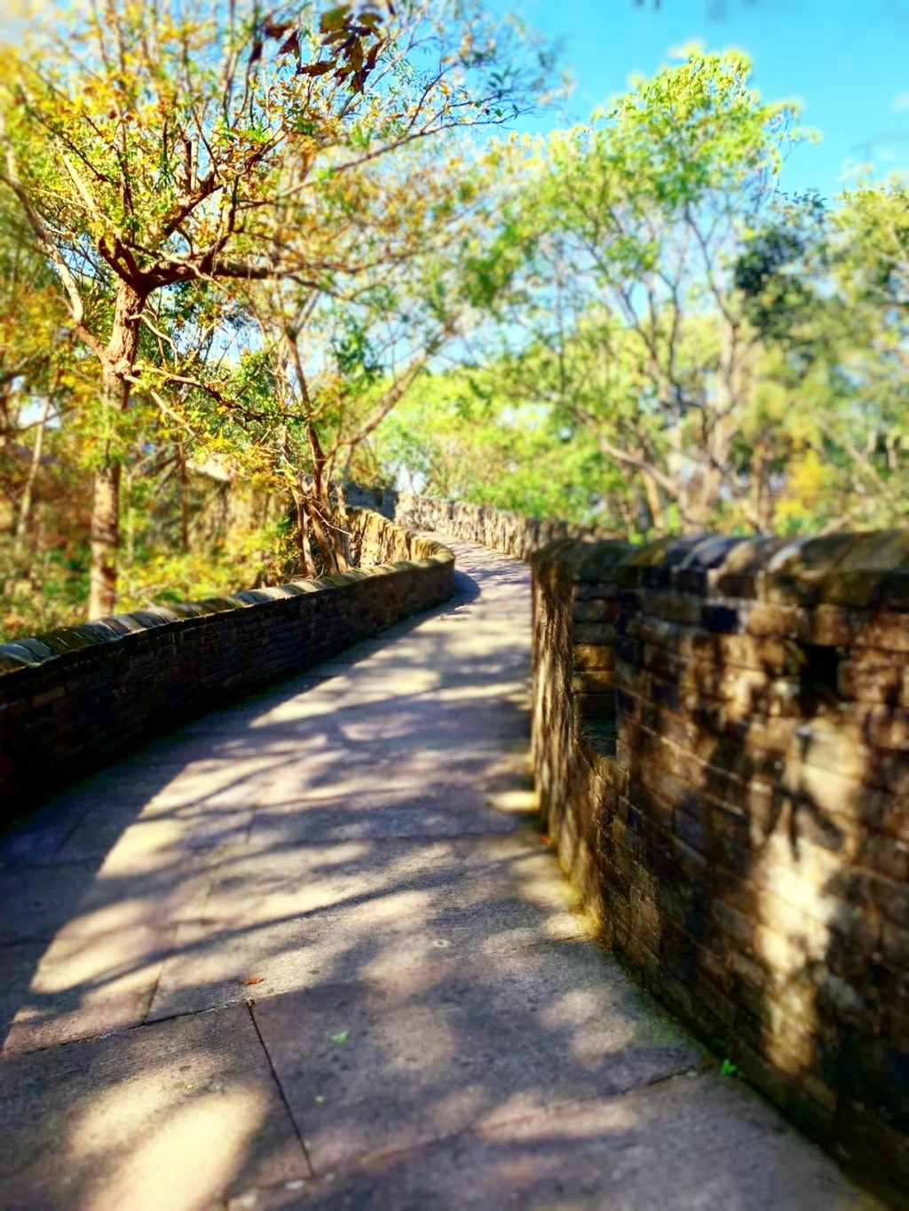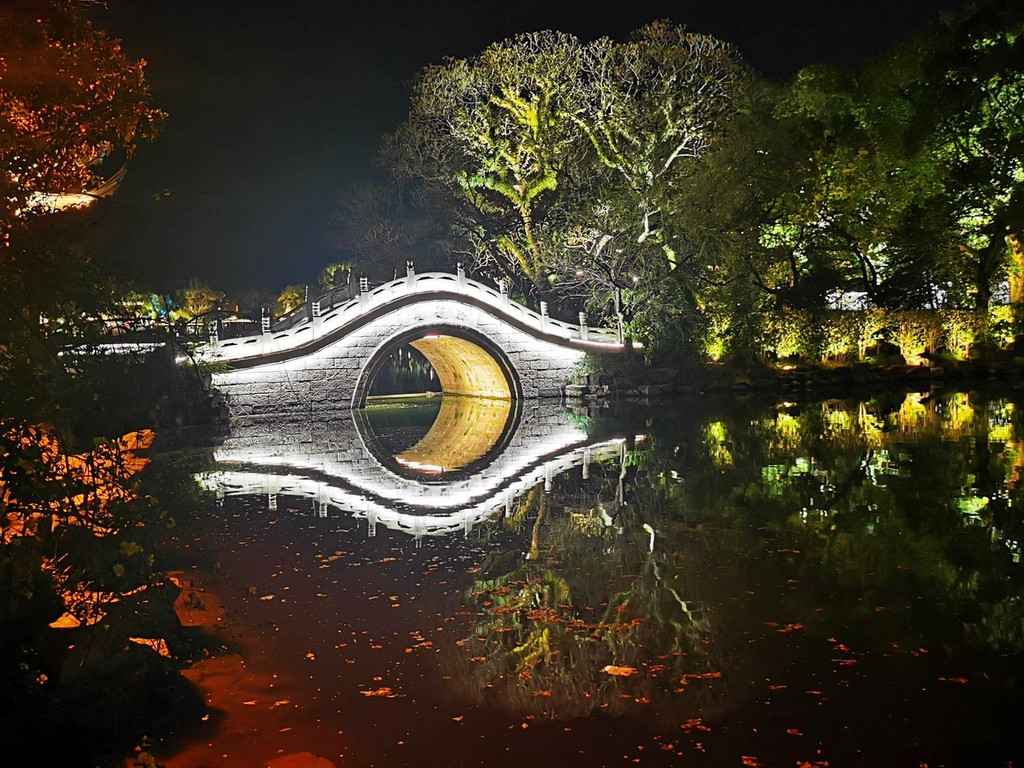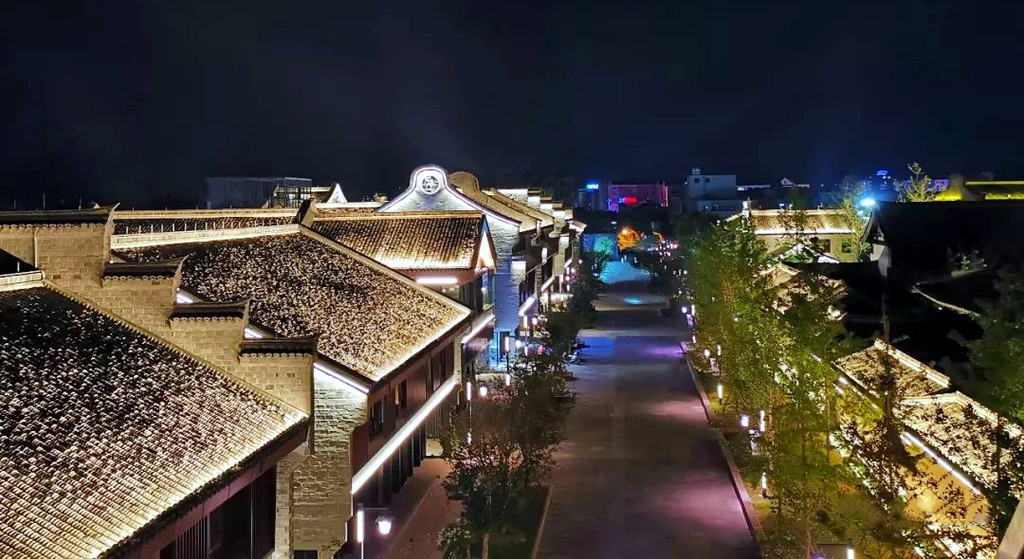 华灯初上,夜色朦胧,从兴善门上城墙散步(晚七点后免费),巍峨的城墙被灯光点亮,一块块历经沧桑的城砖闪烁着光芒,一座座双层空心敌台点亮了古城的浪漫,龙兴寺内的千佛塔被夜光照得透亮,和巾山文峰双塔遥遥相望,沿着龙兴寺古老的院墙慢走,晚风送来古寺里的香烛气味,节气灯笼墙散发着梦幻般的柔光,我们感受着古寺的宁静禅意,街道两旁古雅灯火,流光溢彩,演绎着光与影的交融,还有浓郁的怀旧气息诠释着古城的味道,不知不觉走到东湖,只见湖面平波,亭台如画,堤隔桥连,活脱脱一个袖珍版的西湖,与东湖公园北门仅隔一条马路的江南长城在夜幕下,褪去了青山巍峨的气势,披上了一层安静又柔美的华丽外衣,抬头仰望,山顶城墙之上有一楼阁直插云霄,楼顶高插青冥,气势非凡,我们在灯光隧道里,寻找穿越的感觉。