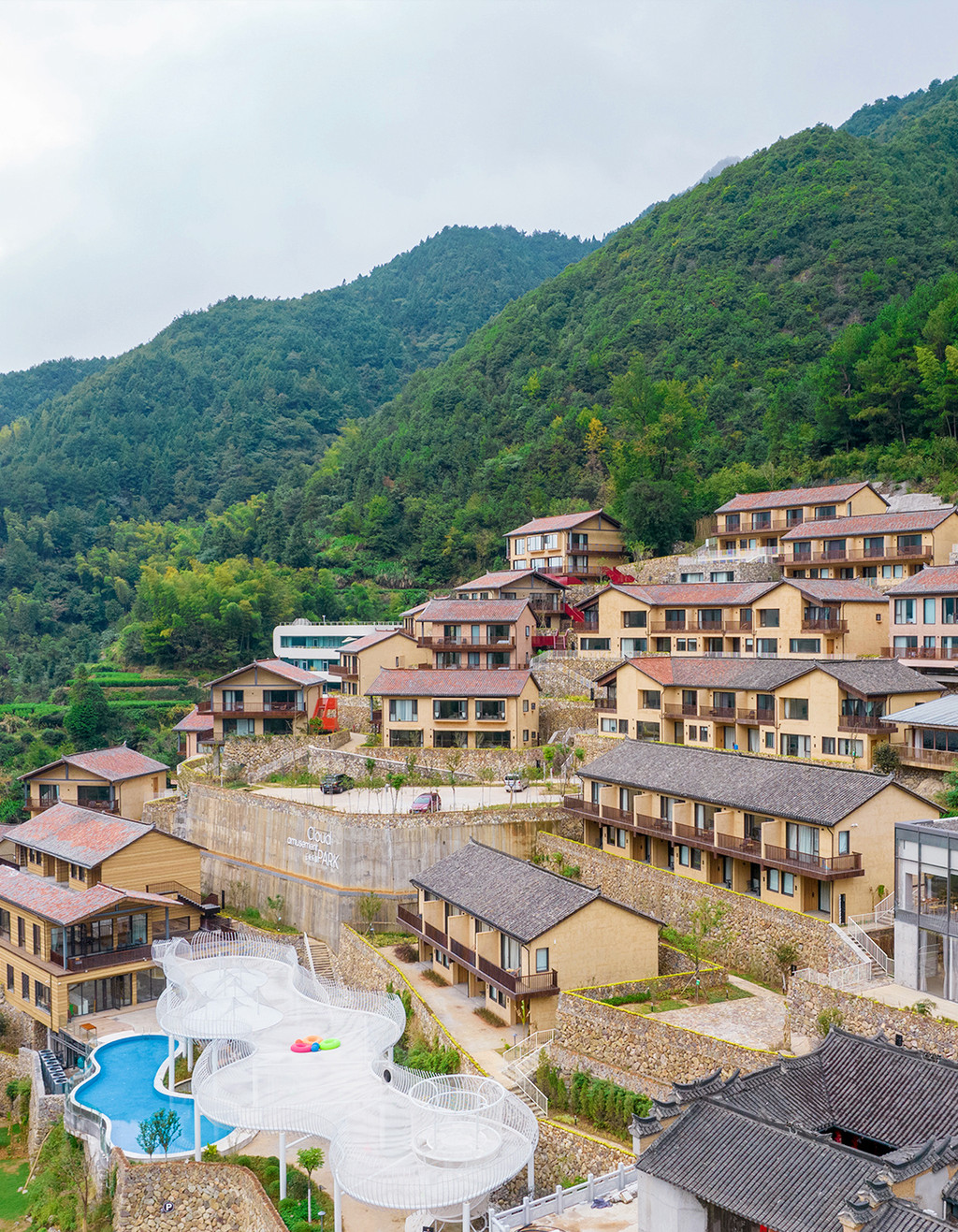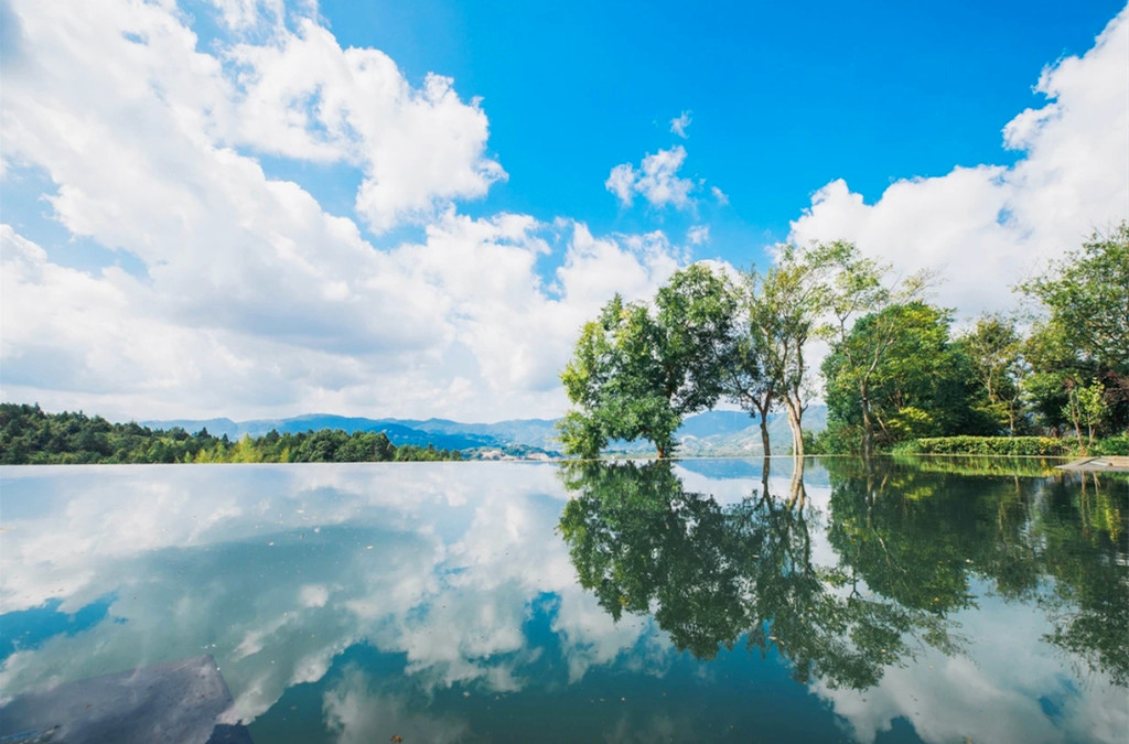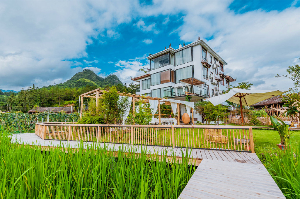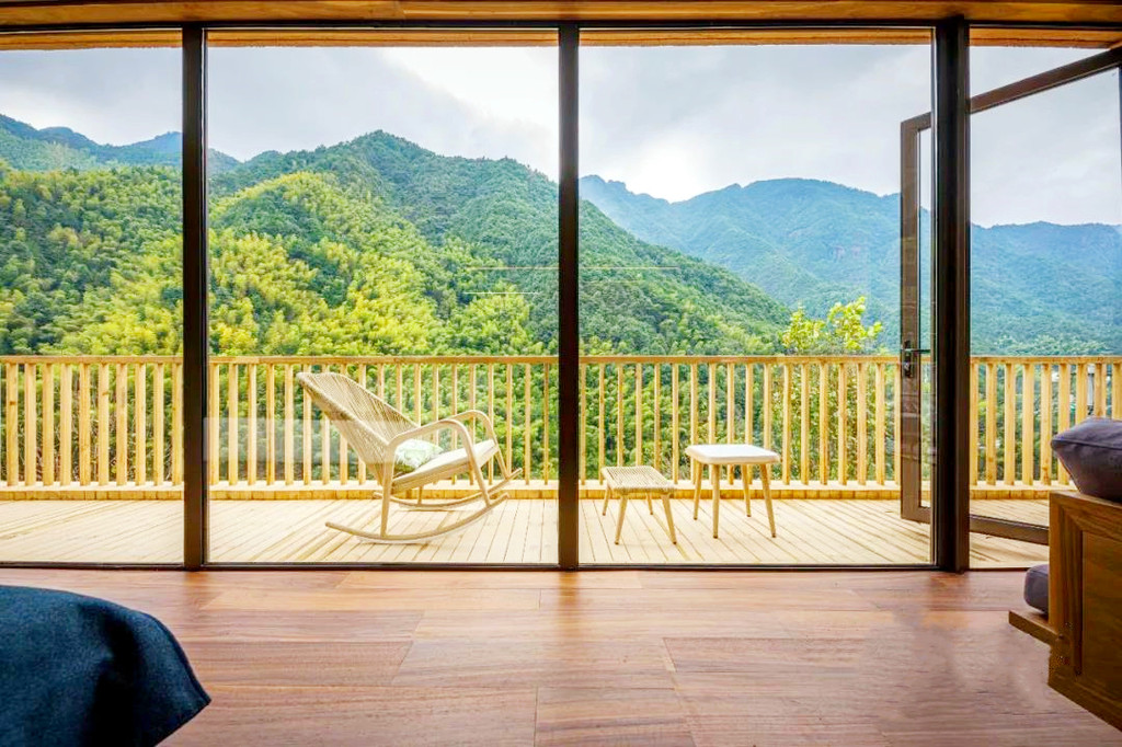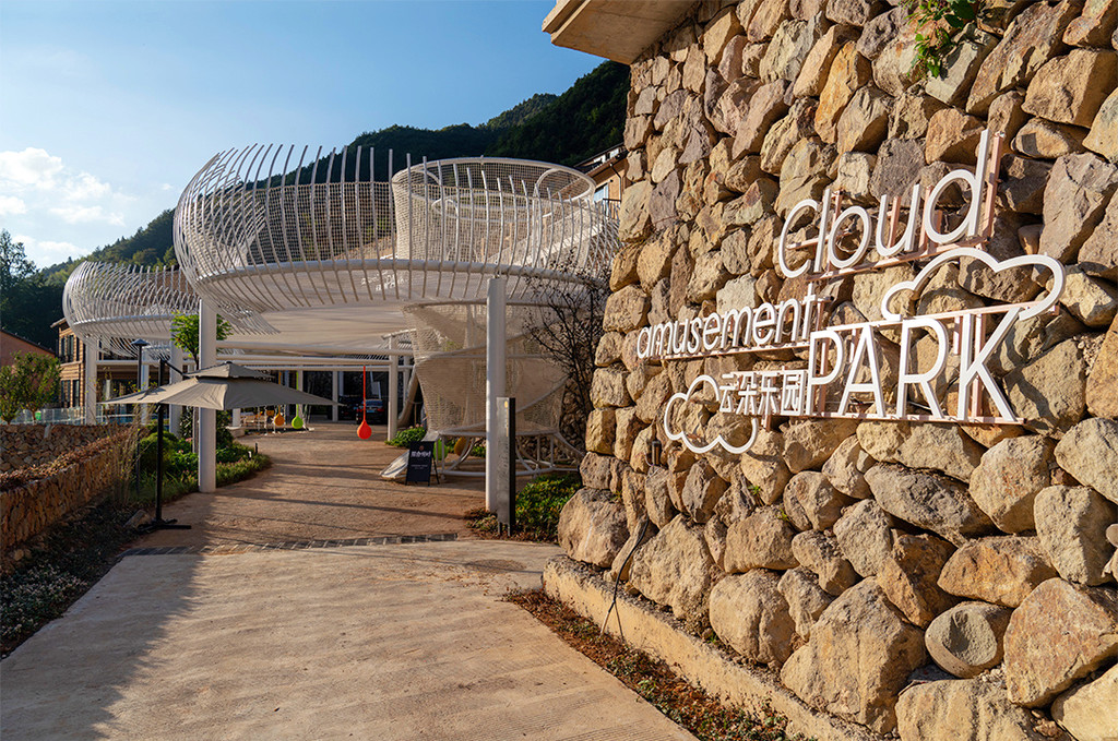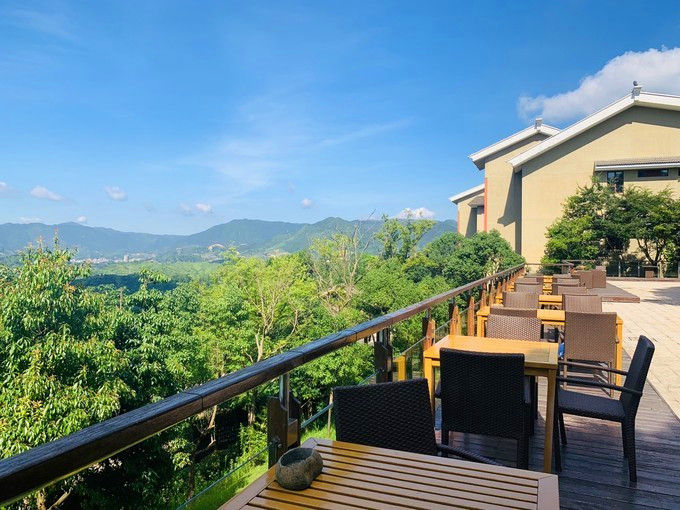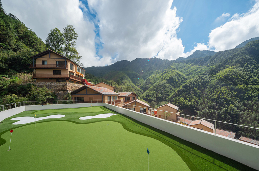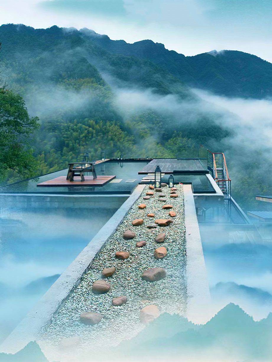 清晨在鸟鸣声中悠悠转醒,拉开窗帘,是一整面墙的青山浮云,云雾自山谷间翻涌而上,变幻中又慢慢飘散开来,揽树的一天,从阳光洒进房间的那一刻开始,仿佛拉开了一幅动人的画卷,满眼的翠绿瞬间点亮了内心,推开落地玻璃门,便能呼吸到清新纯粹的滋味。揽树的公共配套是非常丰富的,随处可见的观景平台,可以360度无死角随手拍出大片,云朵乐园童趣十足,流水书院仿佛一只坠入山崖的玻璃盒子,顶层还有迷你高尔夫模拟场……虽然这里隐于大山深处,但这样的山景,这样的环境配套,确实可以足不出户就享受到一个悠然而不单调的假期。