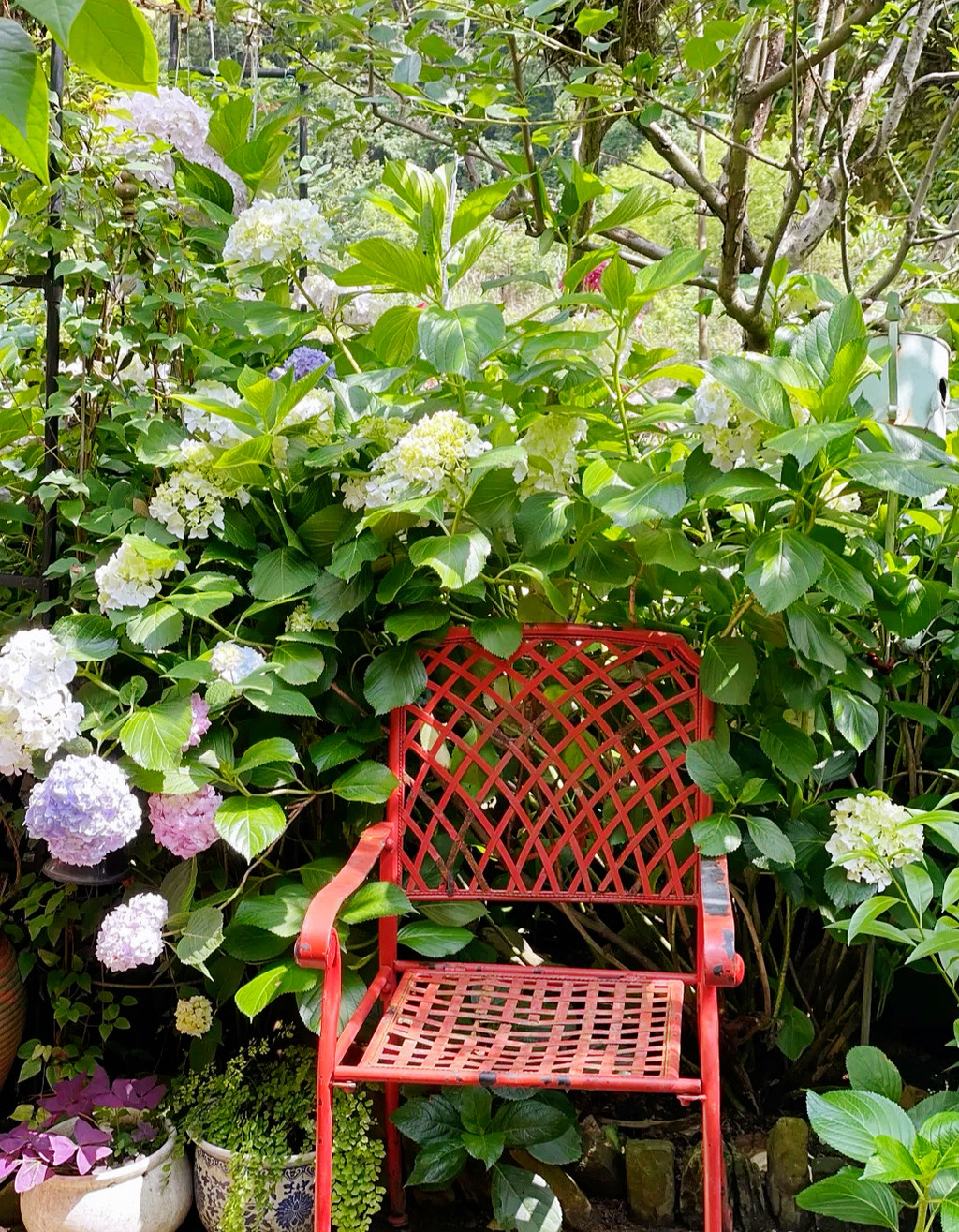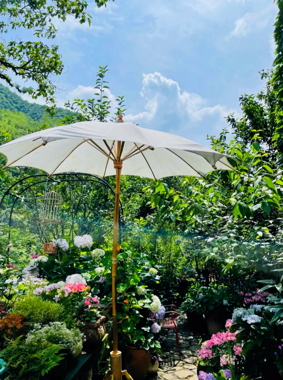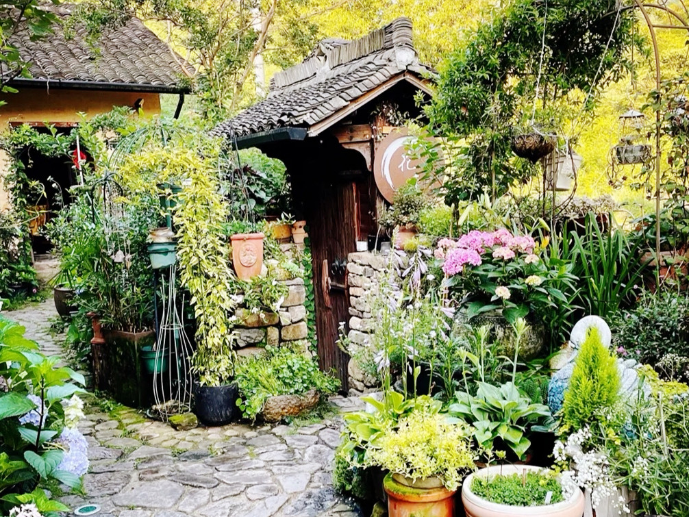 入夜,管家带着我们来到提前预约的“花庐”用餐,这里的老板听说是以前杭州外婆家的主厨,老板娘钟爱养猫和伺弄花草,曲径通幽处,禅房花木深,满园的花花草草,随处是盛放的绣球花,他们夫妻俩栽花、逗猫、下厨、品茶、待客,远离尘世喧嚣,打造出这个诗意的栖居,除却民宿住客,只接待预约客人过来赏花品茶吃美食,香浓的松茸鸡汤、油滋滋的红烧肉配上手工彩虹馒头、正宗的二头乌香肠、酥烂的石斑鱼、特别的观音豆腐和豆腐馄饨、鲜嫩的地瓜叶……珍馐家宴,整晚只有我们一桌客人,老板全程热情陪聊,还拿出珍藏的手工自酿酒与我们共饮,值得回味!