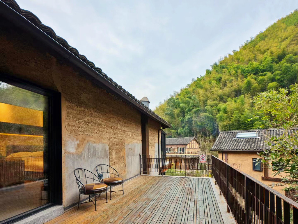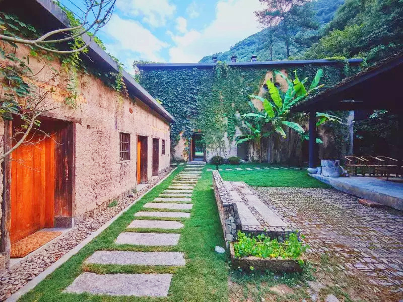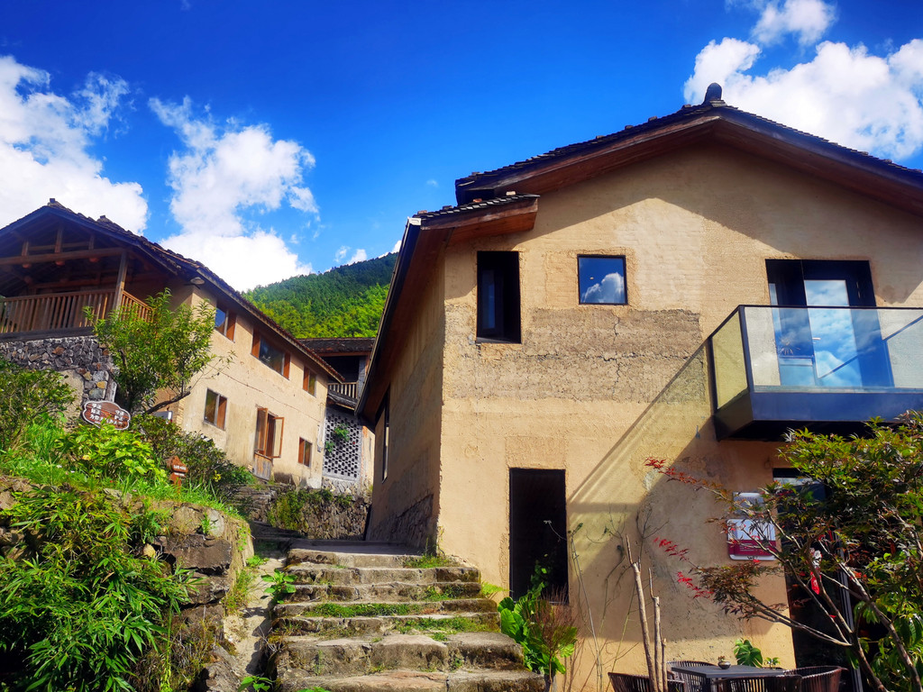 青龙坞,桐庐半山腰上一座古朴的小村落,二十几户人家静静的倚在山水环抱间,青山翠谷,夯土泥房,独享一隅,就连上山的车道也很狭窄……这份隐居避世的意境,和很多日本乡村类似置身其中,会让人完全忘记城市的存在,如今这里成了全国第一个艺术设计民宿村。